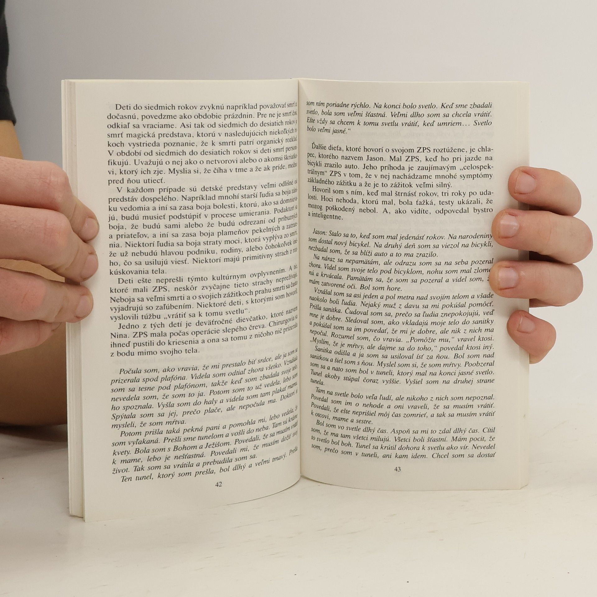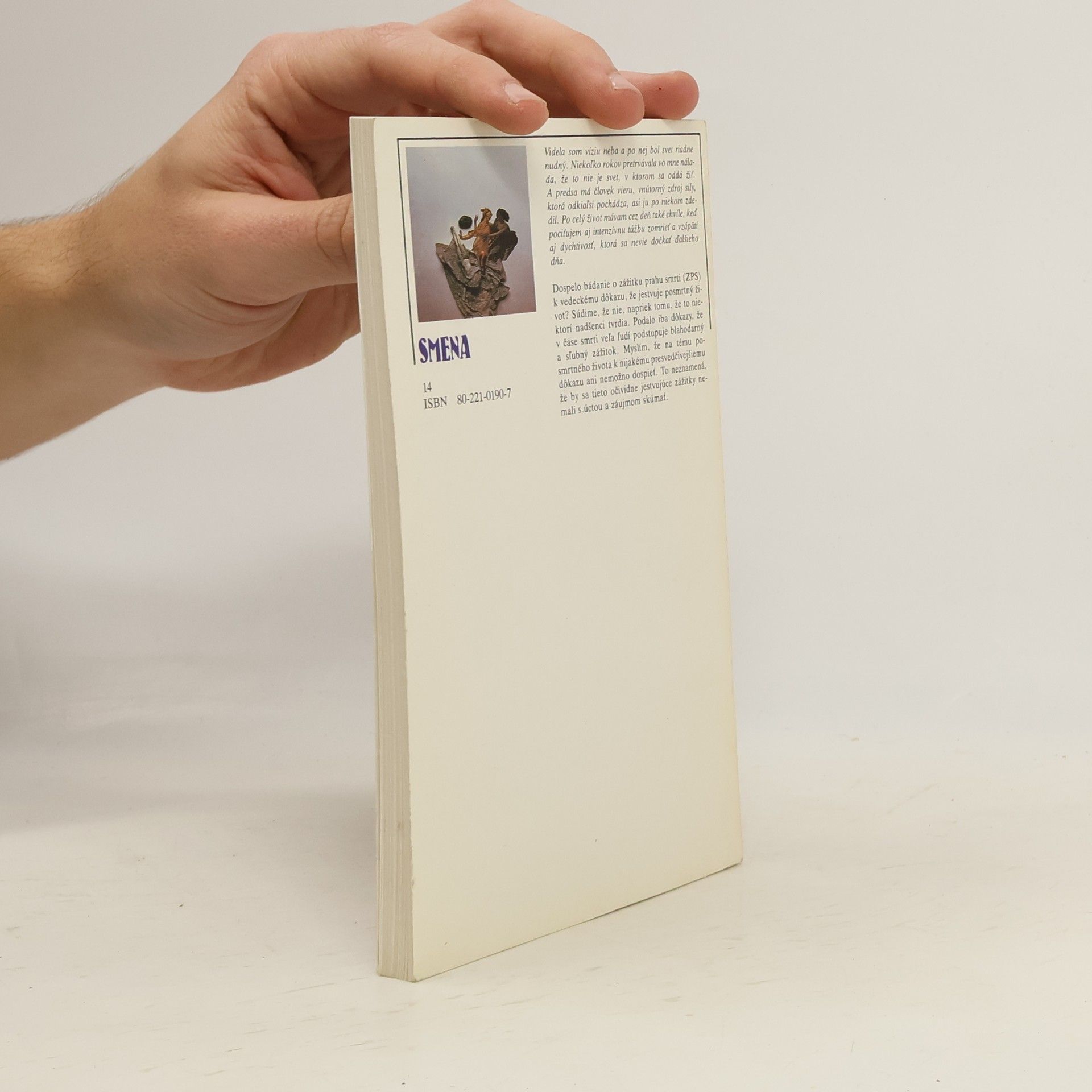 Dospelo bádanie o zážitku prahu smrti (ZPS) k vedeckému dôkazu, že jestvuje posmrtný život? Súdime, že nie, napriek tomu, že to niektorí nadšenci tvrdia. Podalo iba dôkazy, že v čase smrti veľa ľudí podstupuje blahodarný a sľubný zážitok. Myslím, že na tému posmrtného života k nijakému presvedčivejšiemu dôkazu ani nemožno dospieť. To neznamená, že by sa tieto očividne jestvujúce zážitky nemali s úctou a záujmom skúmať. Doslov napísal MUDr. Ivan Hudec. Vydanie prvé.