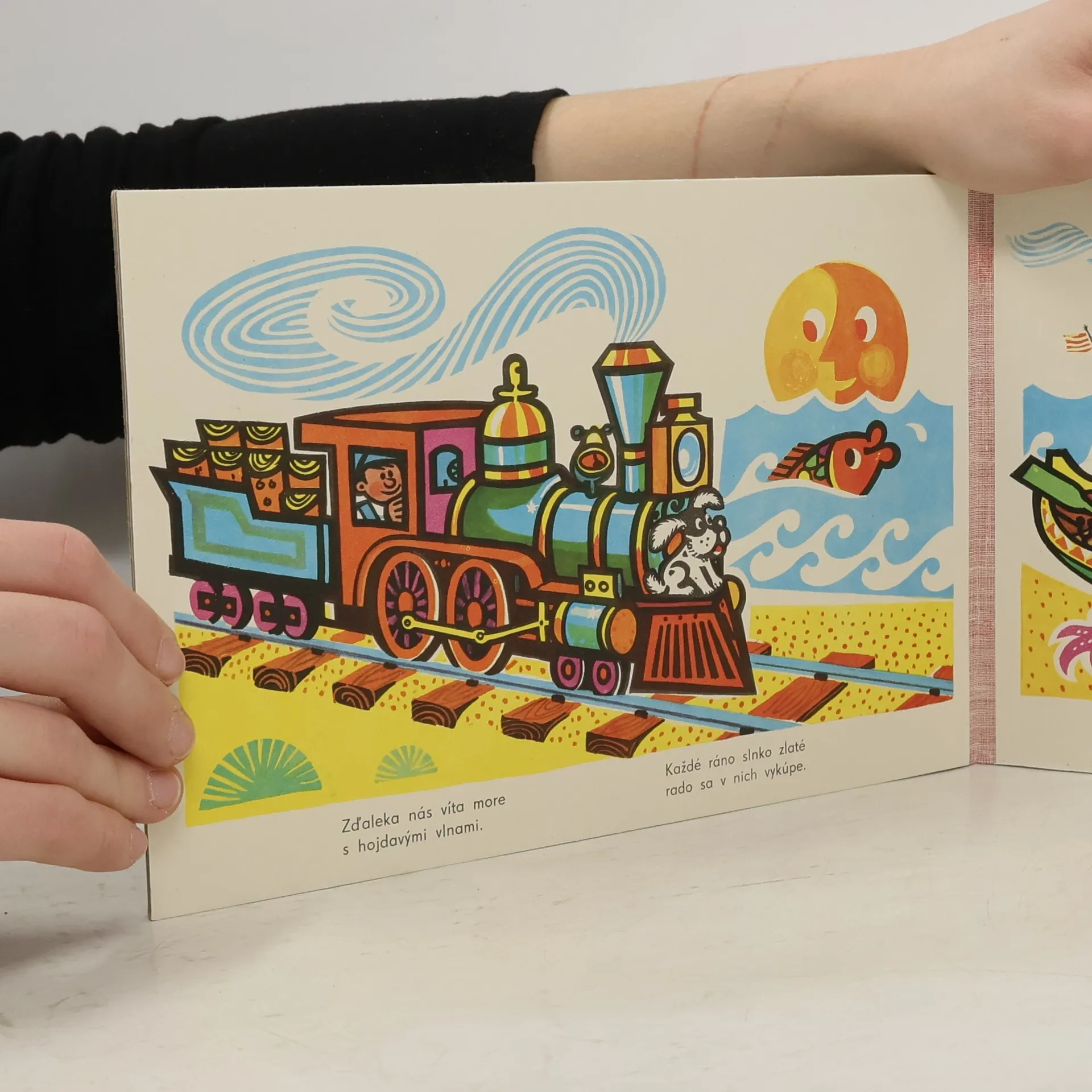 Veršované leporelo s ilustracemi o vláčku a jeho cestování