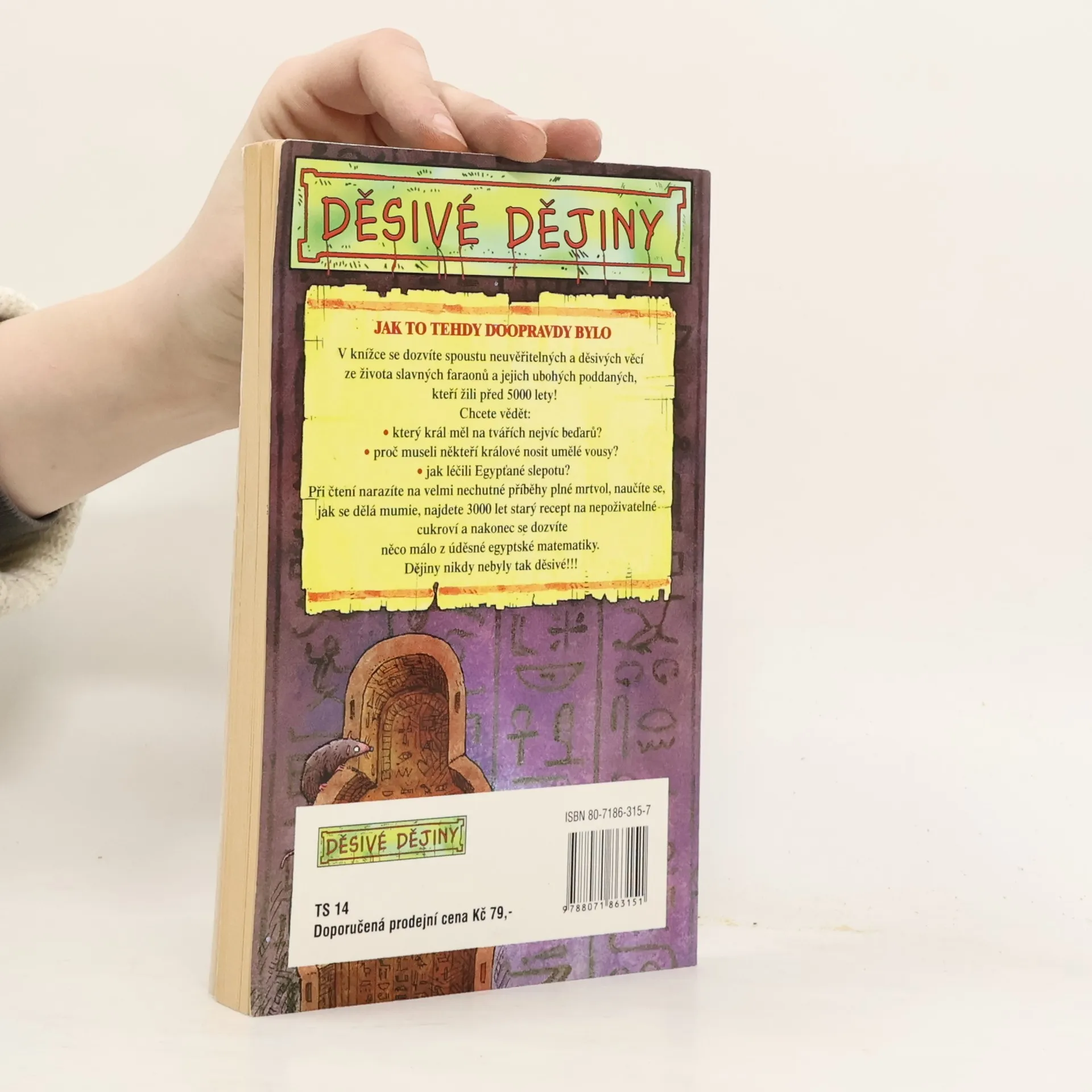 V knížce o strašlivých Egypťanech se dočtete spoustu neuvěřitelných a děsivých věcí ze života slavných faraonů a jejich ubohých poddaných. Dozvíte se například, který faraon měl na tvářích nejvíc beďarů, proč museli někteří faraoni nosit umělé vousy nebo jak léčili Egypťané slepotu. Při čtení narazíte na nechutné příběhy plné mrtvol a dozvíte se také něco málo z vražedné egyptské matematiky. A to není vąechno: naučíme vás ještě mumifikovat a péct nepoživatelné cukroví podle originálního egyptského receptu starého několik tisíciletí. Dějiny zkrátka nikdy nebyly tak děsivé!!!... celý text