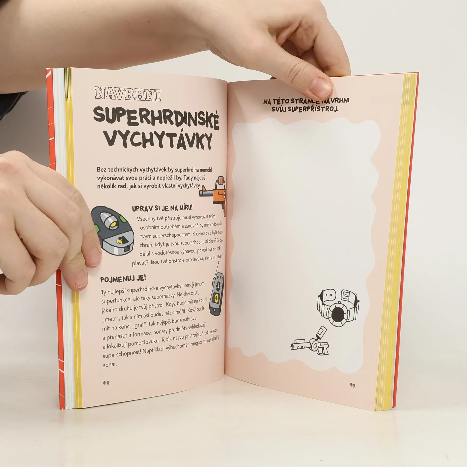 Intenzivní superhrdinský kurz! Čeká na tebe 20 aktivit, které zvýší tvoje superschopnosti a pomůžou ti zachránit svět! Pomocí podrobných návodů s vtipnými obrázky si můžeš vyrobit třeba speciální štít, zrcadlo neviditelnosti, páchnoucí bomby, elektromagnet, imobilizér, naučit se tajnou řeč šifer a nakonec si všechny svoje nadpřirozené schopnosti otestovat! Dokážeš chodit po vejcích? Zmáčknout plechovku? Překonat gravitaci? Když projdeš zkouškou, čeká tě certifikát, supersamolepky a zářná superhrdinská budoucnost.