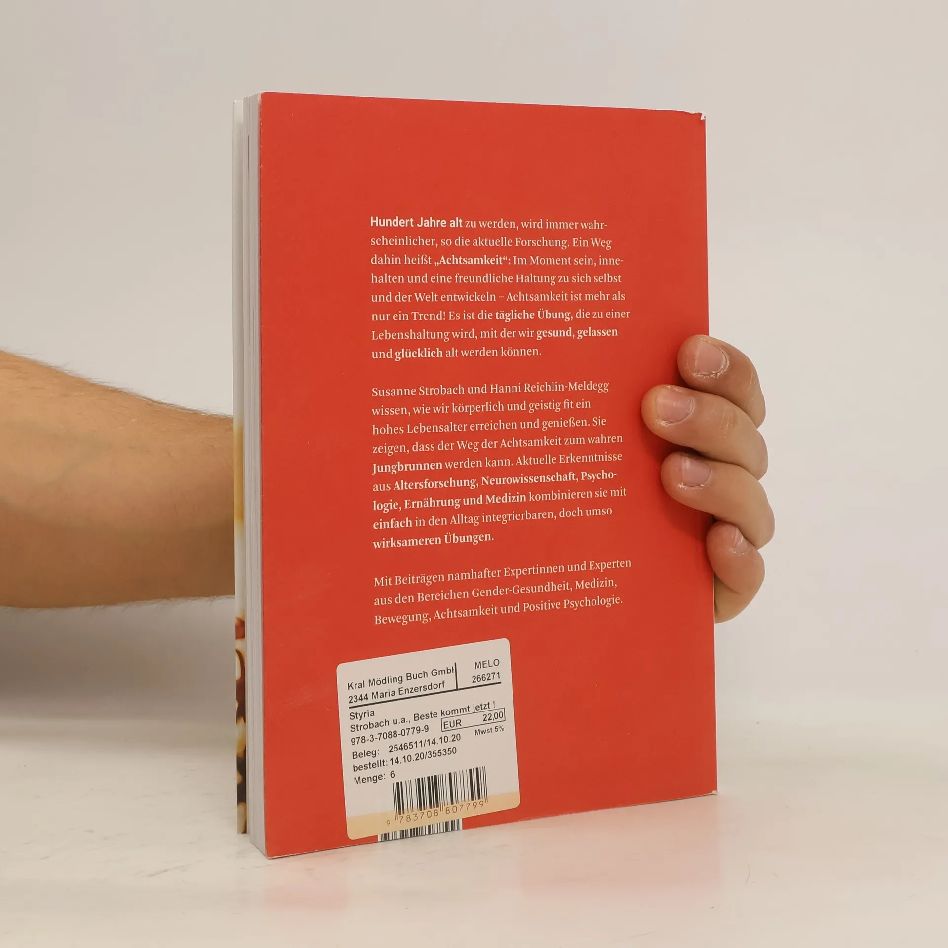Hundert Jahre alt zu werden, wird immer wahrscheinlicher, so die aktuelle Forschung. Ein Weg dahin heißt „Achtsamkeit“: Im Moment sein, innehalten und eine freundliche Haltung zu sich selbst und der Welt entwickeln – Achtsamkeit ist mehr als nur ein Trend! Es ist die tägliche Übung, die zu einer Lebenshaltung wird, mit der wir gesund, gelassen und glücklich alt werden können. Susanne Strobach und Hanni Reichlin-Meldegg wissen, wie wir körperlich und geistig fit ein hohes Lebensalter erreichen und genießen. Sie zeigen, dass der Weg der Achtsamkeit zum wahren Jungbrunnen werden kann. Aktuelle Erkenntnisse aus Altersforschung, Neurowissenschaft, Psychologie, Ernährung und Medizin kombinieren sie mit einfach in den Alltag integrierbaren, doch umso wirksameren Übungen. Mit Beiträgen, u. a. aus den Bereichen Gender-Gesundheit, Medizin, Bewegung, Achtsamkeit und Positive Psychologie, von Dr. Markus Ebner, Prof. in Dr. in med. Alexandra Kautzky-Willer, Mag. Erwin Krall, Elisabeth Kirchmair, Mag. a Helga Luger-Schreiner, Dr. med. Wolf-Dieter Nagl, Dr. med. Florian Ploberger, Mag. a Petra Schwiglhofer, Dr. in med. Barbara Sciborsky, Mag. P. A. Straubinger.