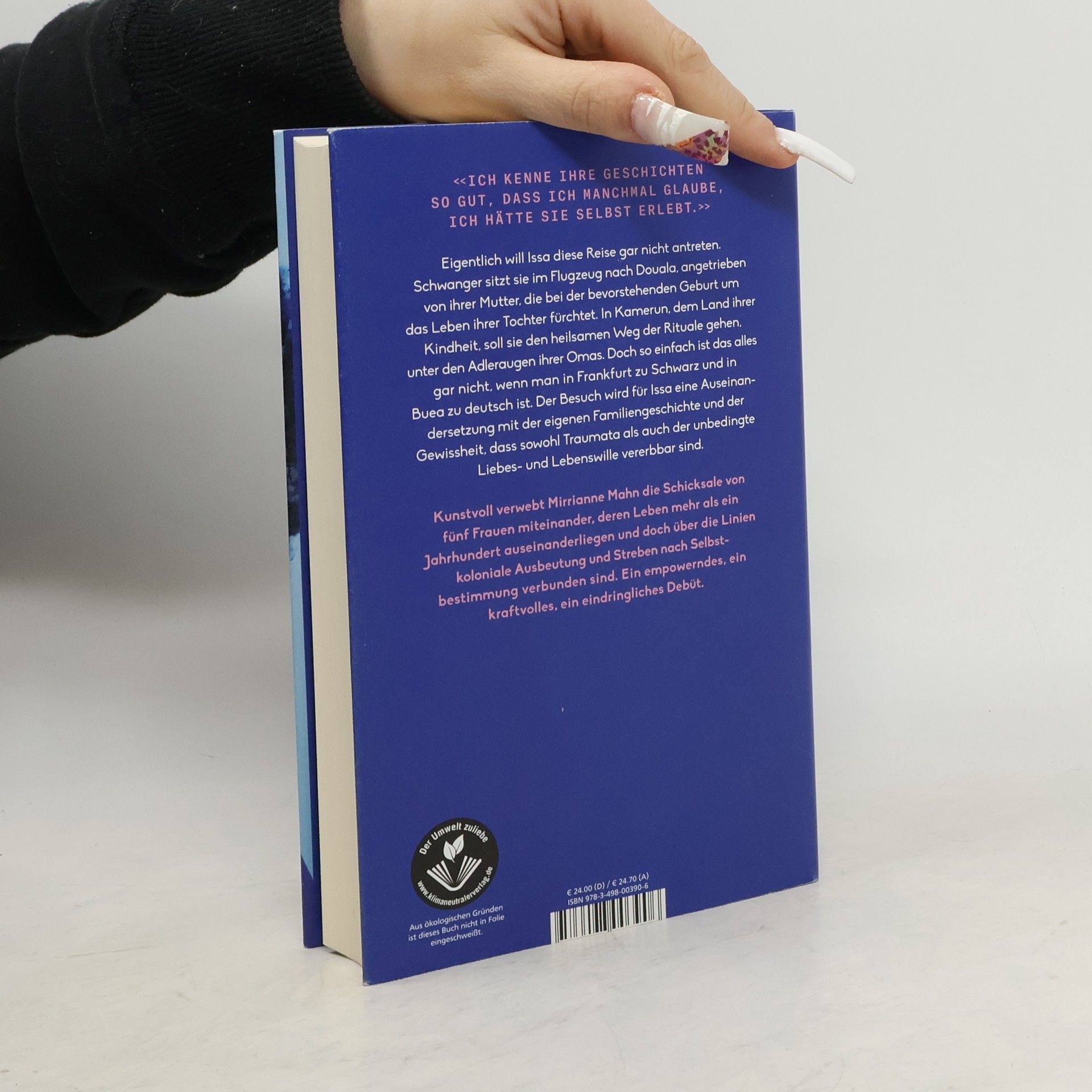 «Ich kenne ihre Geschichten so gut, dass ich manchmal glaube, ich hätte sie selbst erlebt.» Eigentlich will Issa diese Reise gar nicht antreten. Schwanger sitzt sie im Flugzeug nach Douala, angetrieben von ihrer Mutter, die bei der bevorstehenden Geburt um das Leben ihrer Tochter fürchtet. In Kamerun, dem Land ihrer Kindheit, soll sie den heilsamen Weg der Rituale gehen, unter den Adleraugen ihrer Omas. Doch so einfach ist das alles gar nicht, wenn man in Frankfurt zu schwarz und in Buea zu deutsch ist. Der Besuch wird für Issa eine Auseinandersetzung mit der eigenen Familiengeschichte und der Gewissheit, dass sowohl Traumata als auch der unbedingte Liebes- und Lebenswille vererbbar sind. Kunstvoll verwebt Mirrianne Mahn die Schicksale von fünf Frauen miteinander, deren Leben mehr als ein Jahrhundert auseinanderliegen und doch über die Linien kolonialer Ausbeutung und Streben nach Selbstbestimmung verbunden sind. Ein empowerndes, ein kraftvolles, ein eindringliches Debüt. «Beeindruckend, wie liebevoll und tastend Mirrianne Mahn ihre Figuren zeichnet.» Daniela Dröscher