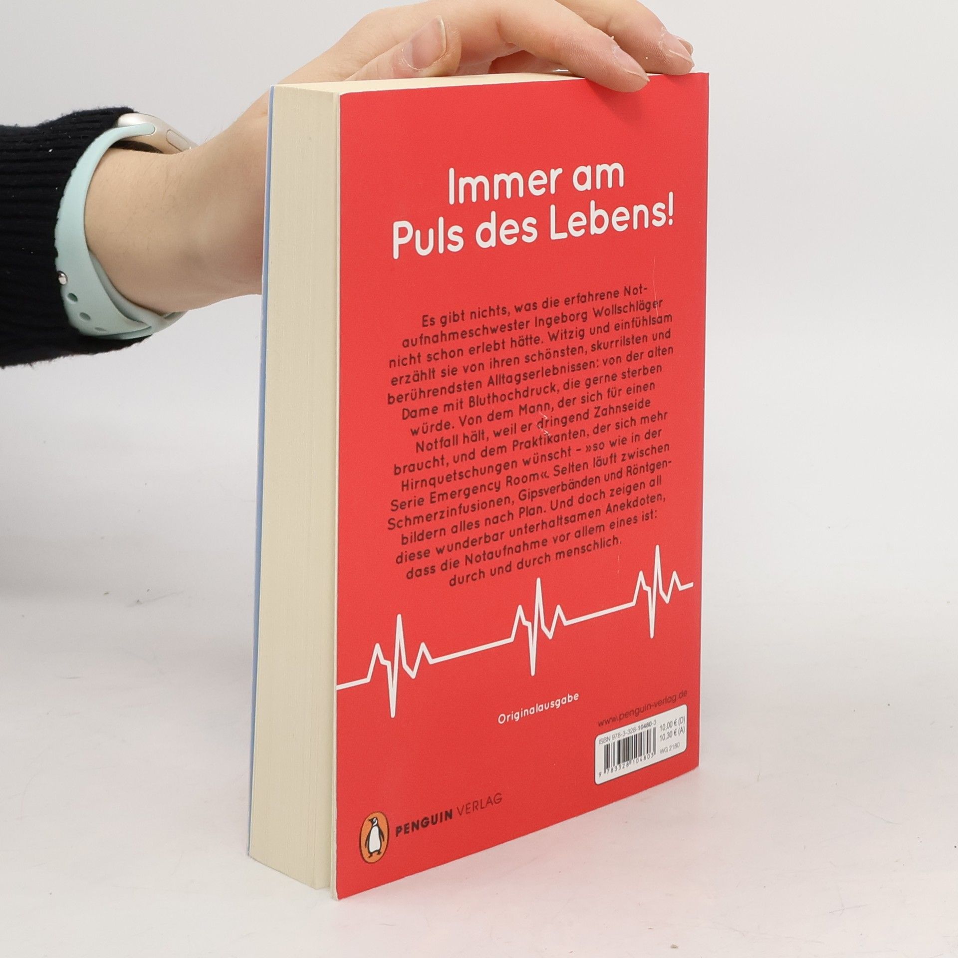 Die skurrilsten und dramatischsten Geschichten aus der Notaufnahme – von der Erfolgsbloggerin Ingeborg Wollschläger hat als erfahrene Notaufnahmeschwester schon alles erlebt. Witzig und einfühlsam erzählt sie von ihren skurrilsten, schönsten und berührendsten Alltagserlebnissen: von der alten Dame mit Bluthochdruck, die ganz gerne sterben würde. Von dem Mann, der sich für einen Notfall hält, weil er dringend Zahnseide braucht, und dem Praktikanten, der sich mehr Hirnquetschungen wünscht – so wie in Emergency Room. Selten läuft zwischen Schmerzinfusionen, Gipsverbänden und Röntgenbildern alles nach Plan. Und doch zeigen all diese wunderbar unterhaltsamen Geschichten, dass die Notaufnahme vor allem eines ist: durch und durch menschlich.