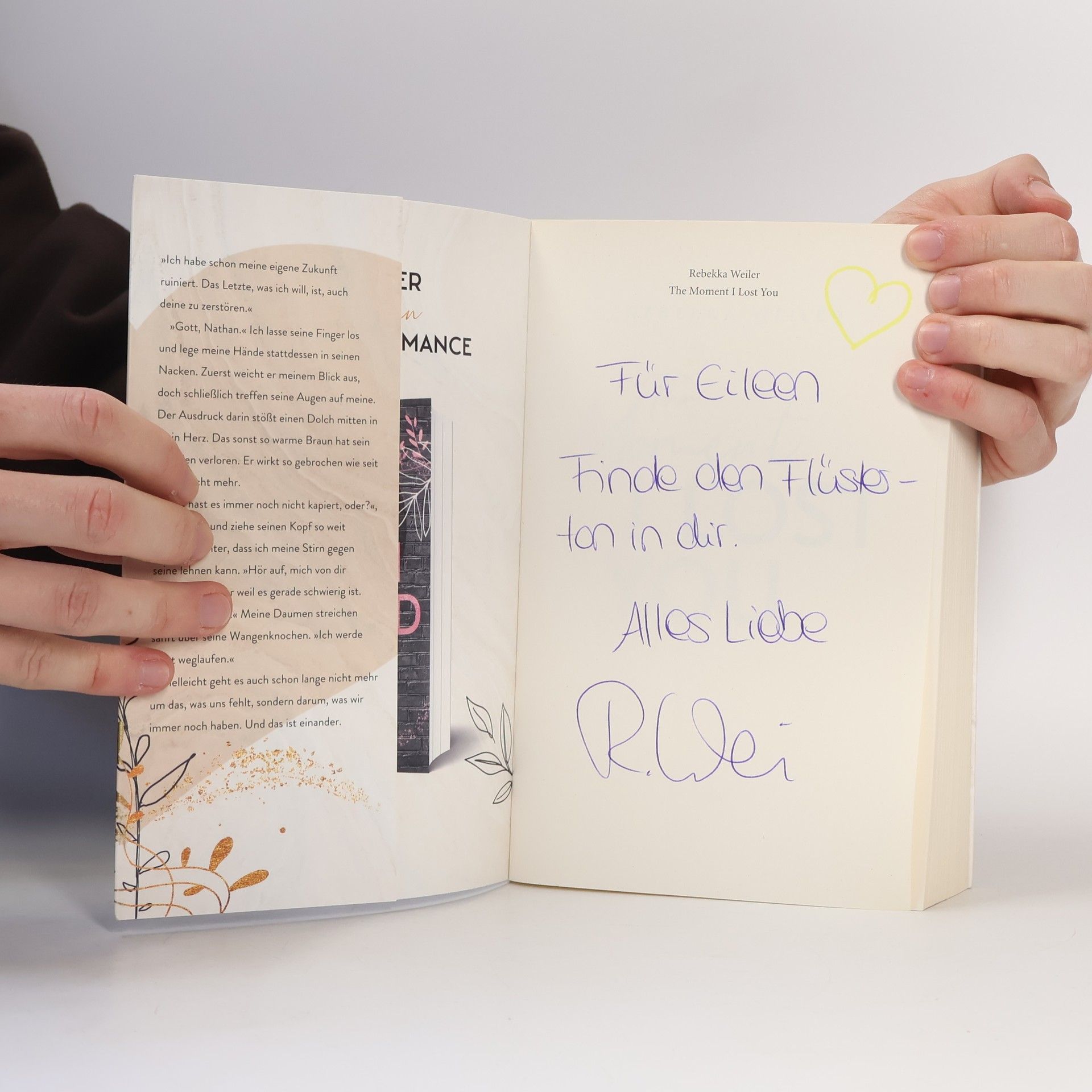 It Takes Courage To Forgive. It Takes Forgiveness To Love. Vier Jahre. So lang ist es her, dass Mias bester Freund auf einer Party gestorben ist. Aber trotzdem ist sie nicht für den Moment gewappnet, als Nathan Dawson plötzlich vor ihr steht. Der Mensch, der ihren besten Freund auf dem Gewissen hat. Ihre Wege kreuzen sich immer häufiger, und allmählich entwickeln sich zaghafte Gefühle. Doch egal, wie sehr Mia und Nathan sich dagegen zu wehren versuchen – zwischen ihnen entsteht etwas, das alte Wunden heilen könnte … oder neue verursacht. Eine Leseprobe aus „The Moment I Lost You“: »Ich habe schon meine Zukunft ruiniert. Das Letzte, was ich will, ist, auch deine zu zerstören.« »Nathan …« Ich lasse seine Finger los und lege meine Hände stattdessen in seinen Nacken. Zuerst weicht er meinem Blick aus, doch schließlich treffen seine Augen auf meine. Der Ausdruck darin stößt einen Dolch mitten in mein Herz. Das Braun seiner Iriden hat das Strahlen verloren. Er wirkt so gebrochen wie seit Tagen nicht mehr. »Du hast es noch nicht kapiert, oder?«, flüstere ich und ziehe seinen Kopf so weit zu mir herunter, dass ich meine Stirn gegen seine lehnen kann. »Hör auf, mich von dir zu fernzuhalten, nur weil es gerade schwierig ist. Ich halte das aus.« Meine Daumen streicheln seine Wangen. »Ich werde nicht weglaufen.« Vielleicht geht es nicht mehr um das, was uns fehlt, sondern darum, was wir immer noch haben. Und das ist einander.