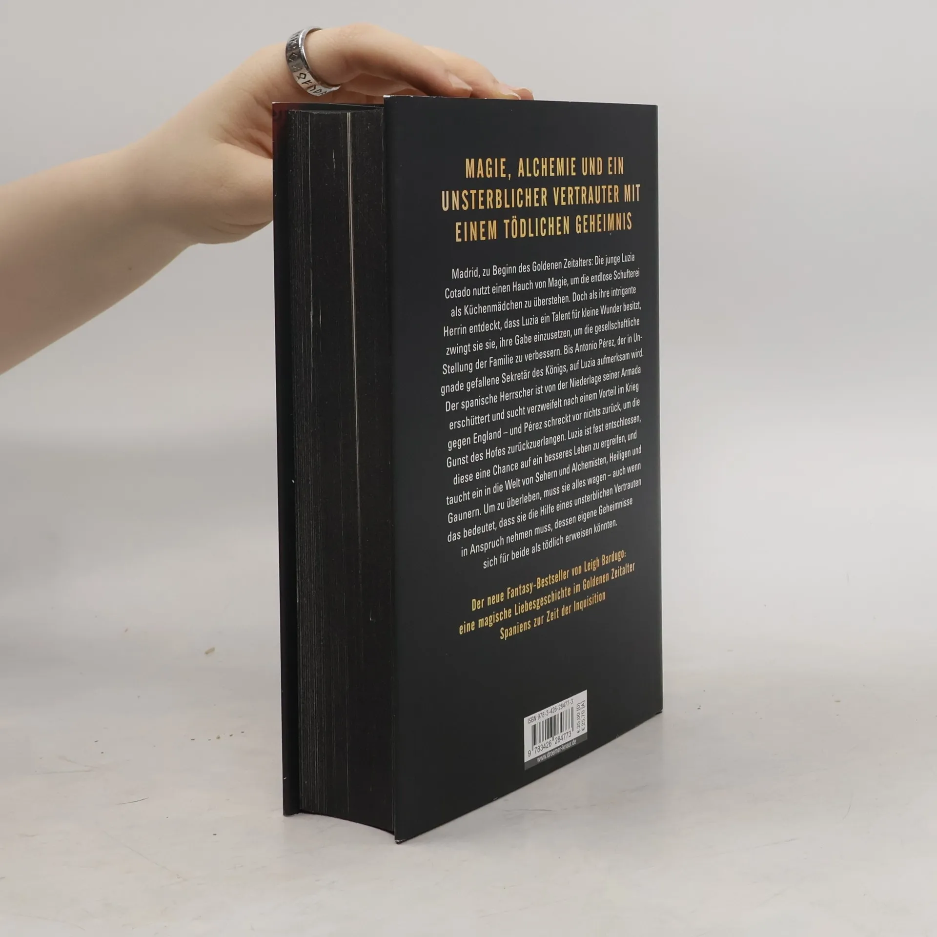 +++ Aufwendig gestaltete Erstauflage mit Farbschnitt, nur solange der Vorrat reicht +++ Magie, Alchemie und ein unsterblicher Vertrauter mit einem tödlichen Geheimnis: Packende historische Fantasy voller Romantik von der Königin der Phantastik Leigh Bardugo Spanien zu Beginn des Goldenen Zeitalters: In einem heruntergekommenen Haus in Madrid nutzt die junge Luzia Cotado einen Hauch von Magie, um die endlose Schufterei als Küchenmädchen zu überstehen. Doch als ihre intrigante Herrin entdeckt, dass ihre Dienerin ein Talent für kleine Wunder besitzt, verlangt sie, dass Luzia diese Gabe einsetzt, um die gesellschaftliche Stellung der Familie zu verbessern. Dieses Unterfangen nimmt eine gefährliche Wendung, als Antonio Pérez, der in Ungnade gefallene Sekretär des Königs, auf Luzia aufmerksam wird. Pérez schreckt vor nichts zurück, um die Gunst des Hofes zurückzuerlangen.