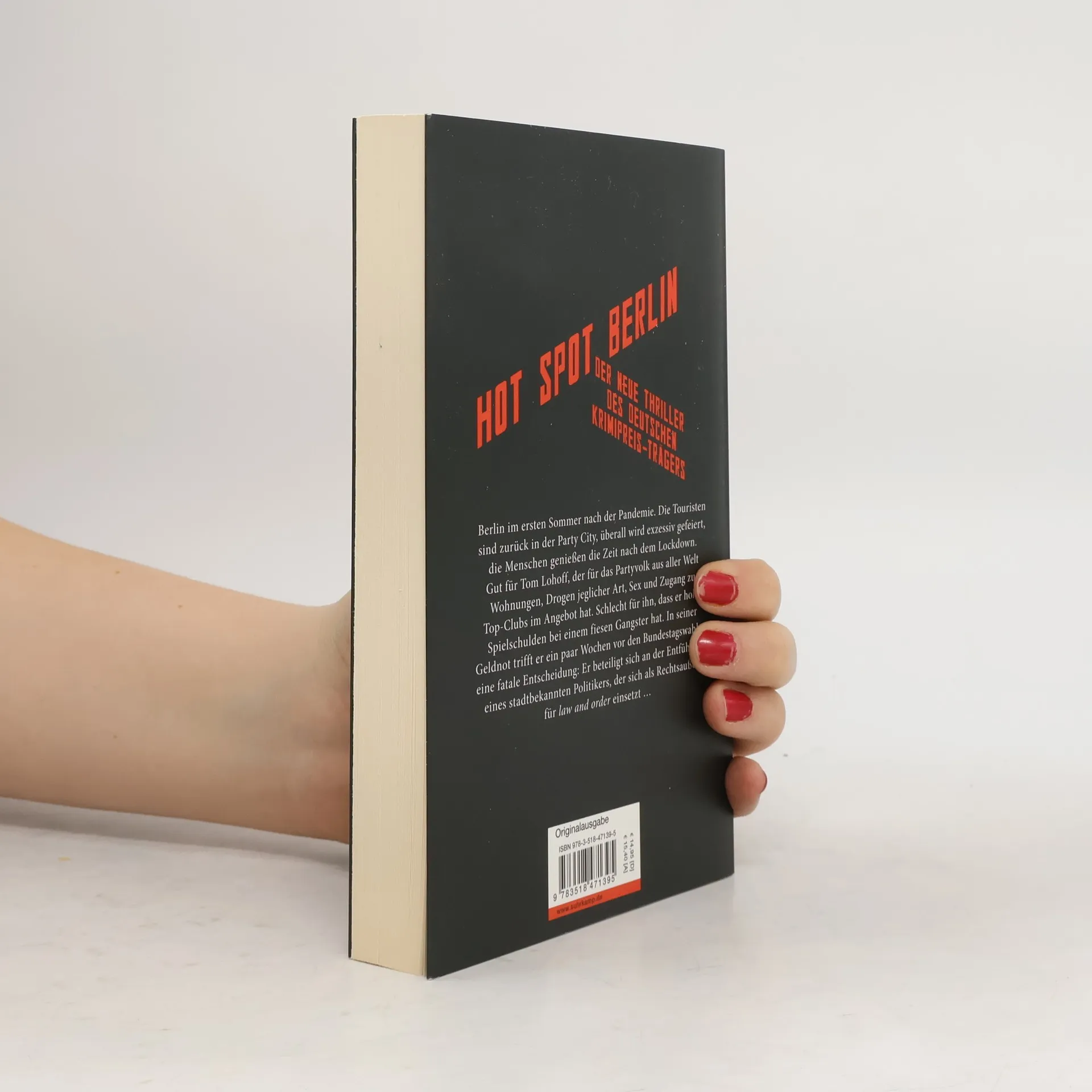 Berlin ist kochend heiß im ersten Sommer nach der Pandemie. Die Touristen sind zurück in der Party City, überall wird exzessiv gefeiert, die Menschen genießen die Zeit nach dem Lockdown. Gut für Tom Lohoff, der für das Partyvolk aus aller Welt Wohnungen, Drogen aller Art, Sex und Zugang zu Top-Clubs im Angebot hat. Und hohe Spielschulden bei einem fiesen Gangster. Tom braucht Geld, egal woher, auch wenn er lügen und betrügen muss. Auch politisch geht es in der Stadt heiß her. In ein paar Wochen sind Bundestagswahlen, die Rechten inszenieren die Entführung eines ihrer Politiker als False-Flag-Operation, um auf Stimmenfang zu gehen, und Tom hat ihnen versehentlich eine seiner Wohnungen vermietet. Die Dinge geraten außer Kontrolle. Atemlos hetzt Tom durch Berlin, immer unter Druck, immer in Gefahr, immer auf der verzweifelten Suche nach Geld. Und da sind noch ein psychotischer Nazi und eine ausgekochte Polizistin. Gewitter krachen über der Stadt, und am Brandenburger Tor und über dem ehemaligen Führerbunker kommt es zu einem blutigen Showdown.