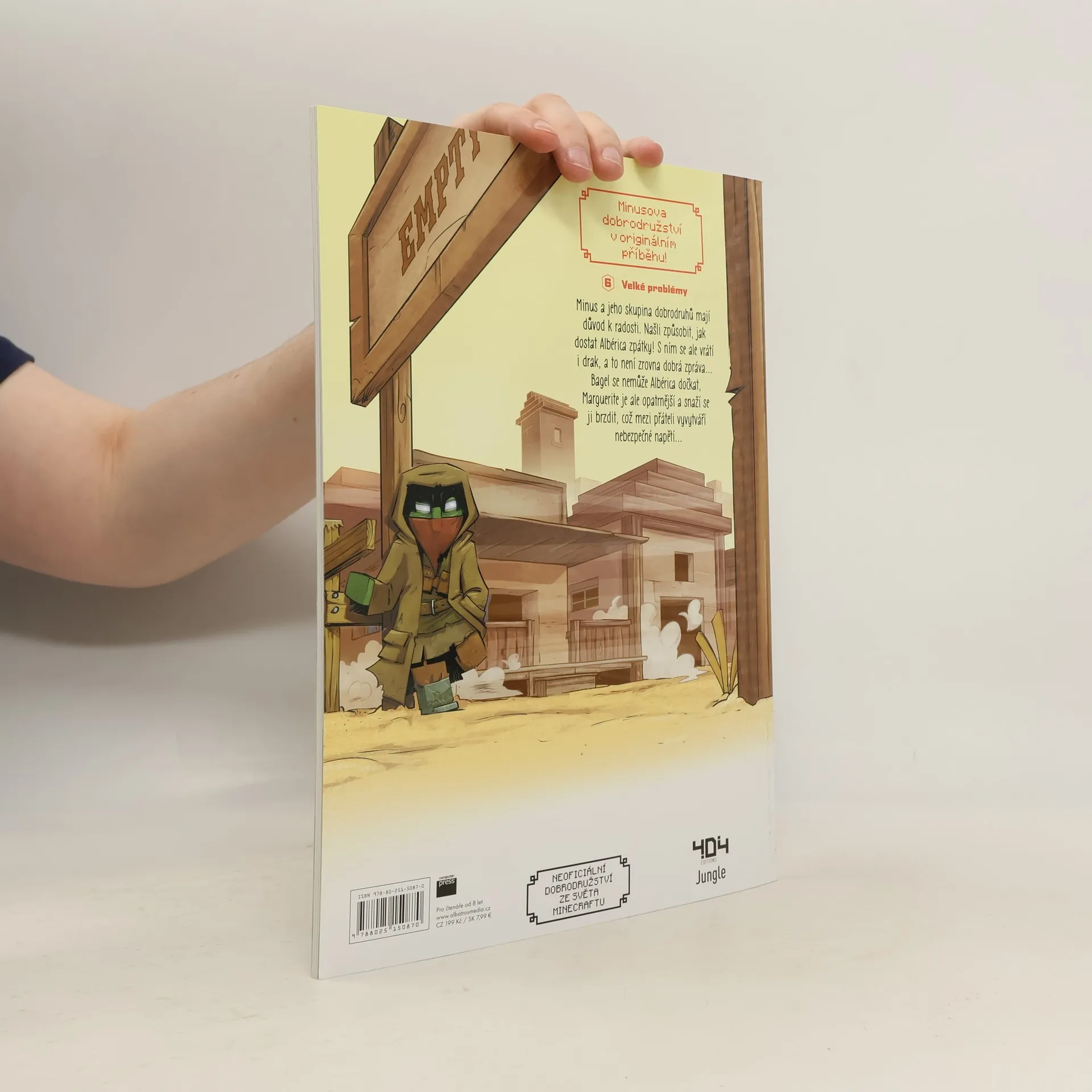 Dobrodružná komiksová výprava světem Minecraftu. Minus a jeho skupina dobrodruhů našli způsob, jak dostat Albérica zpátky. S ním se ale vrátí i drak, a to není zrovna dobrá zpráva. Bagel se nemůže Albérica dočkat, Marguerite je ale opatrnější a snaží se ji brzdit, což mezi přáteli vytváří nebezpečné napětí. Nakladatelská anotace. Kráceno.