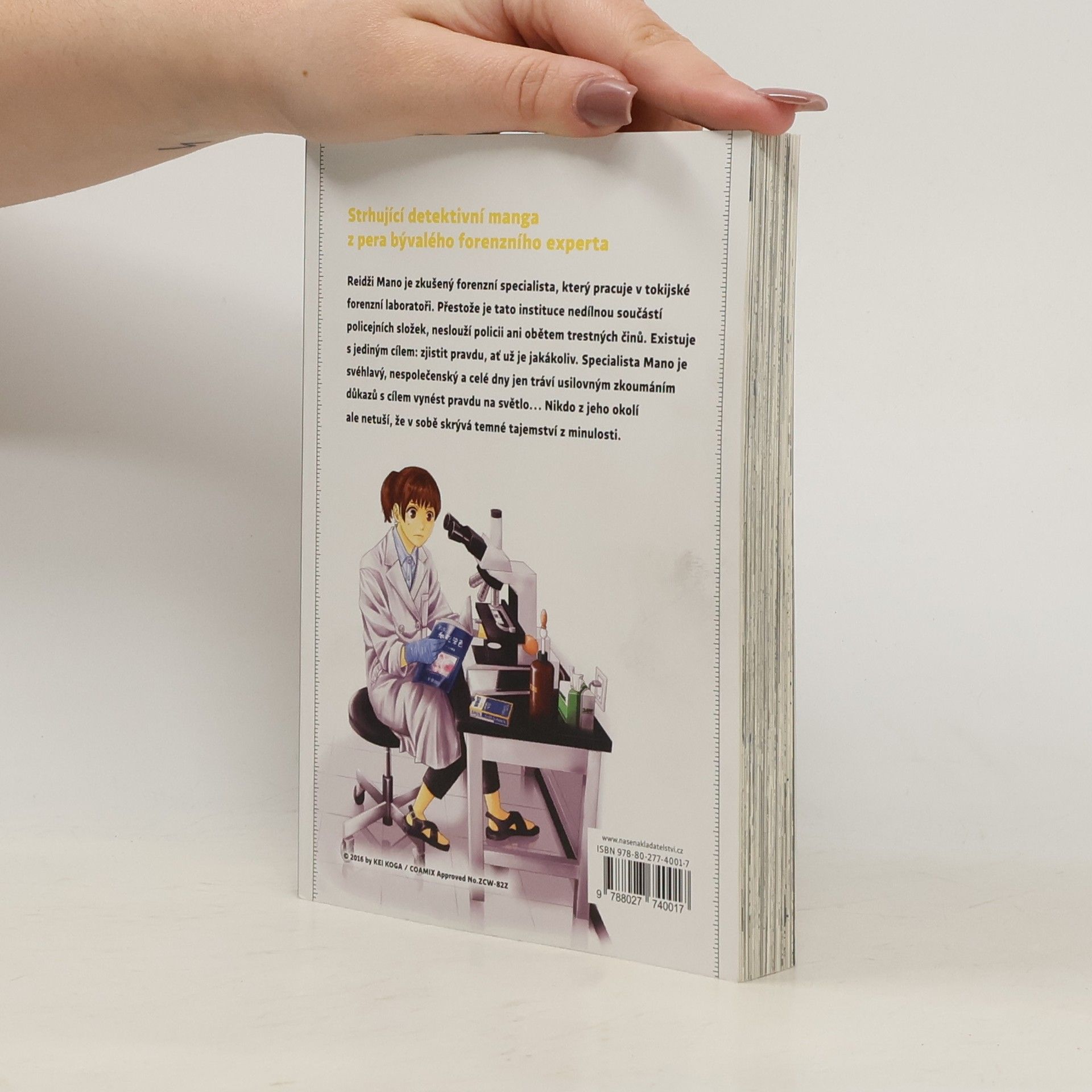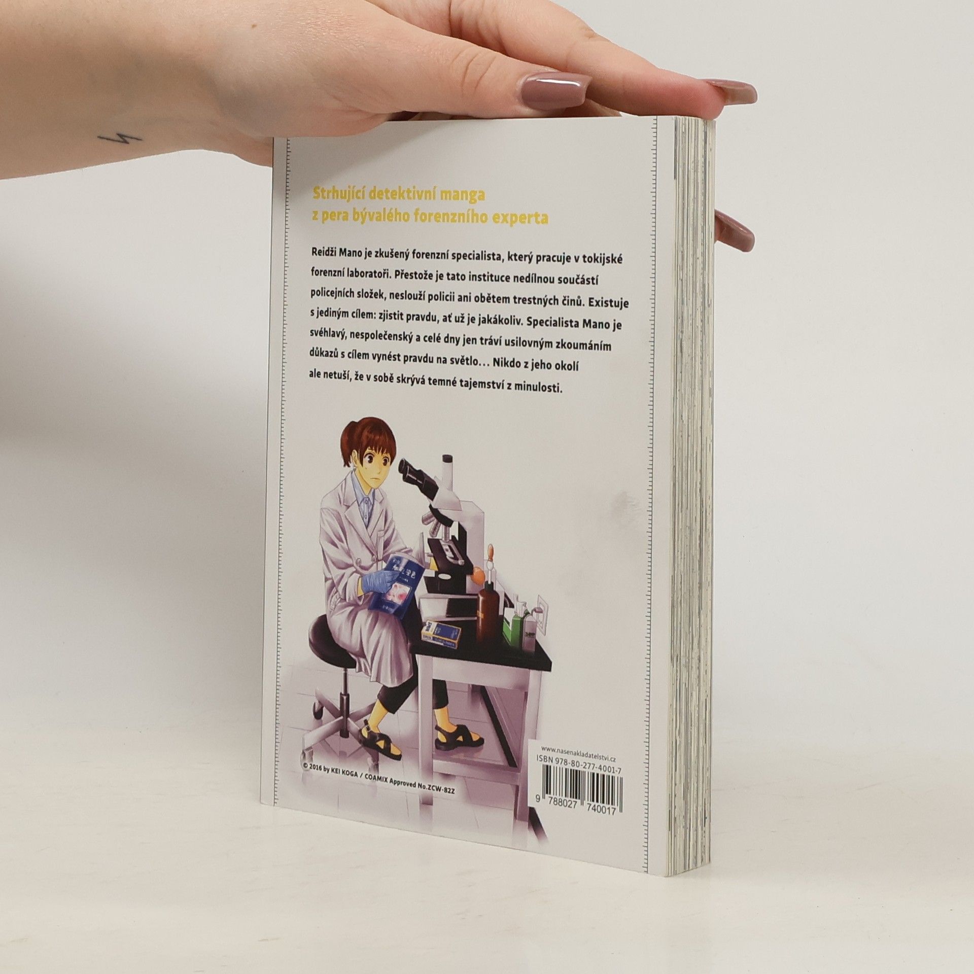 Strhující detektivní manga z pera bývalého forenzního experta. Reidži Mano je zkušený forenzní specialista, který pracuje v tokijské forenzní laboratoři. Přestože je tato instituce nedílnou součástí policejních složek, neslouží policii ani obětem trestných činů. Existuje s jediným cílem: zjistit pravdu, ať už je jakákoliv. Specialita Mano je svéhlavý, nespolečenský a celé dny jen tráví usilovným zkoumáním důkazů s cílem vynést pravdu na světlo Nikdo z jeho okolí ale netuší, že v sobě skrývá temné tajemství z minulosti.