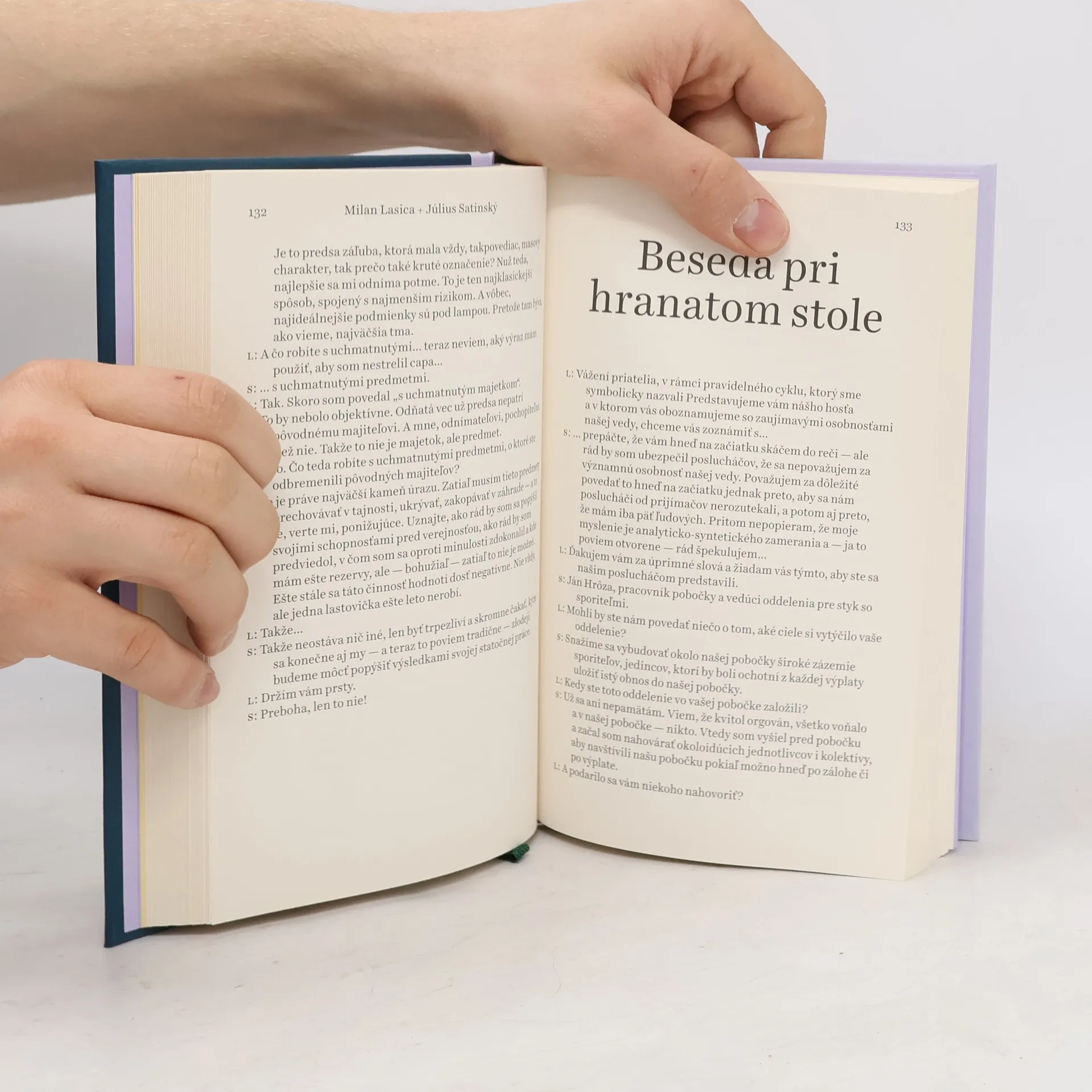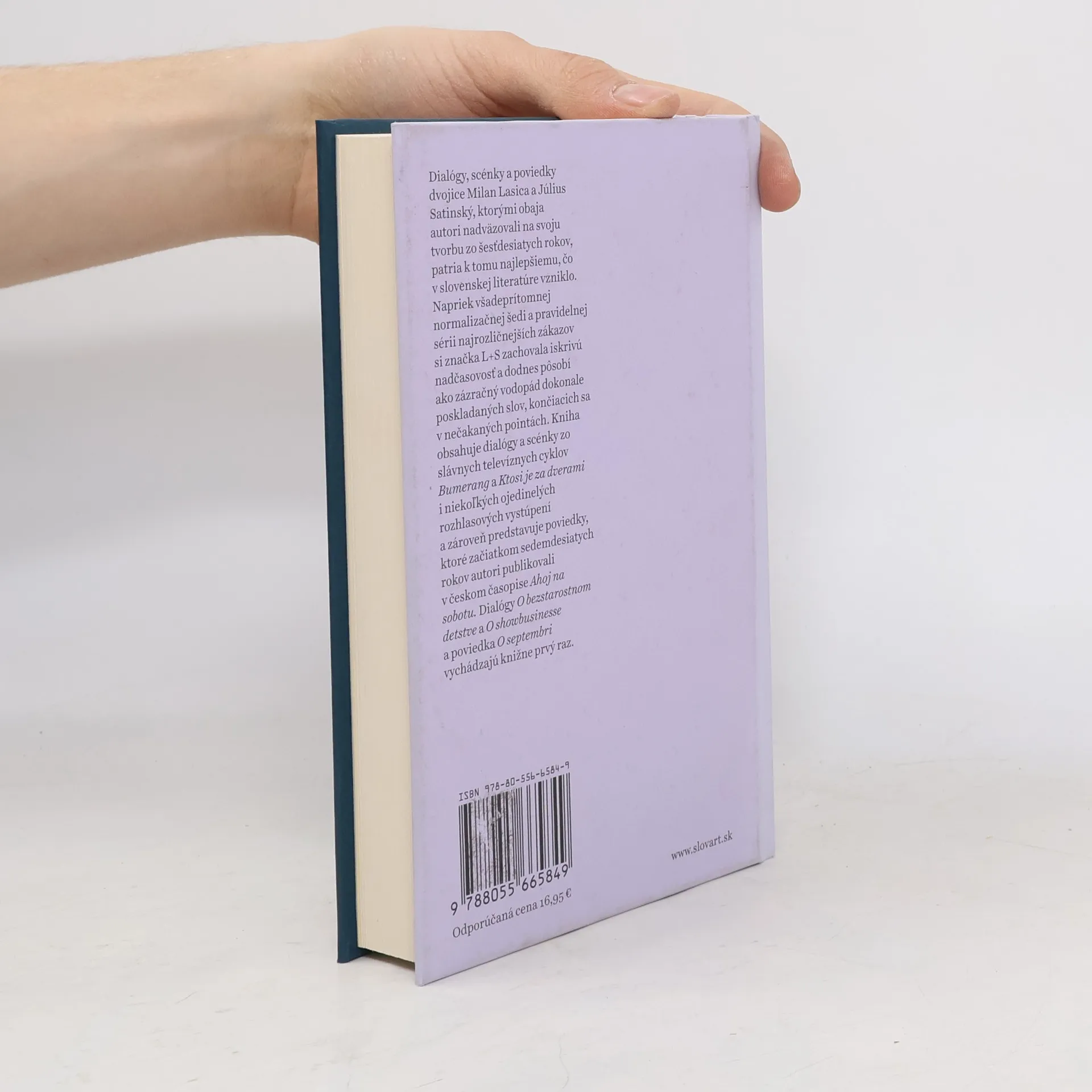 Dialógy, scénky a poviedky dvojice Milan Lasica a Július Satinský, ktorými obaja autori nadväzovali na svoju tvorbu z obdobia spoločenského odmäku, patria k tomu najlepšiemu, čo v slovenskej literatúre vzniklo. Napriek všadeprítomnej normalizačnej šedi a pravidelnej sérii najrozličnejších zákazov si značka L+S zachovala iskrivú nadčasovosť a dodnes pôsobí ako zázračný vodopád dokonale poskladaných slov končiacich v nečakaných pointách. Kniha obsahuje dialógy a scénky zo slávnych televíznych cyklov Bumerang a Ktosi je za dverami i niekoľkých ojedinelých rozhlasových vystúpení a zároveň predstavuje poviedky, ktoré začiatkom 70. rokov publikovali v českom časopise Ahoj na sobotu
