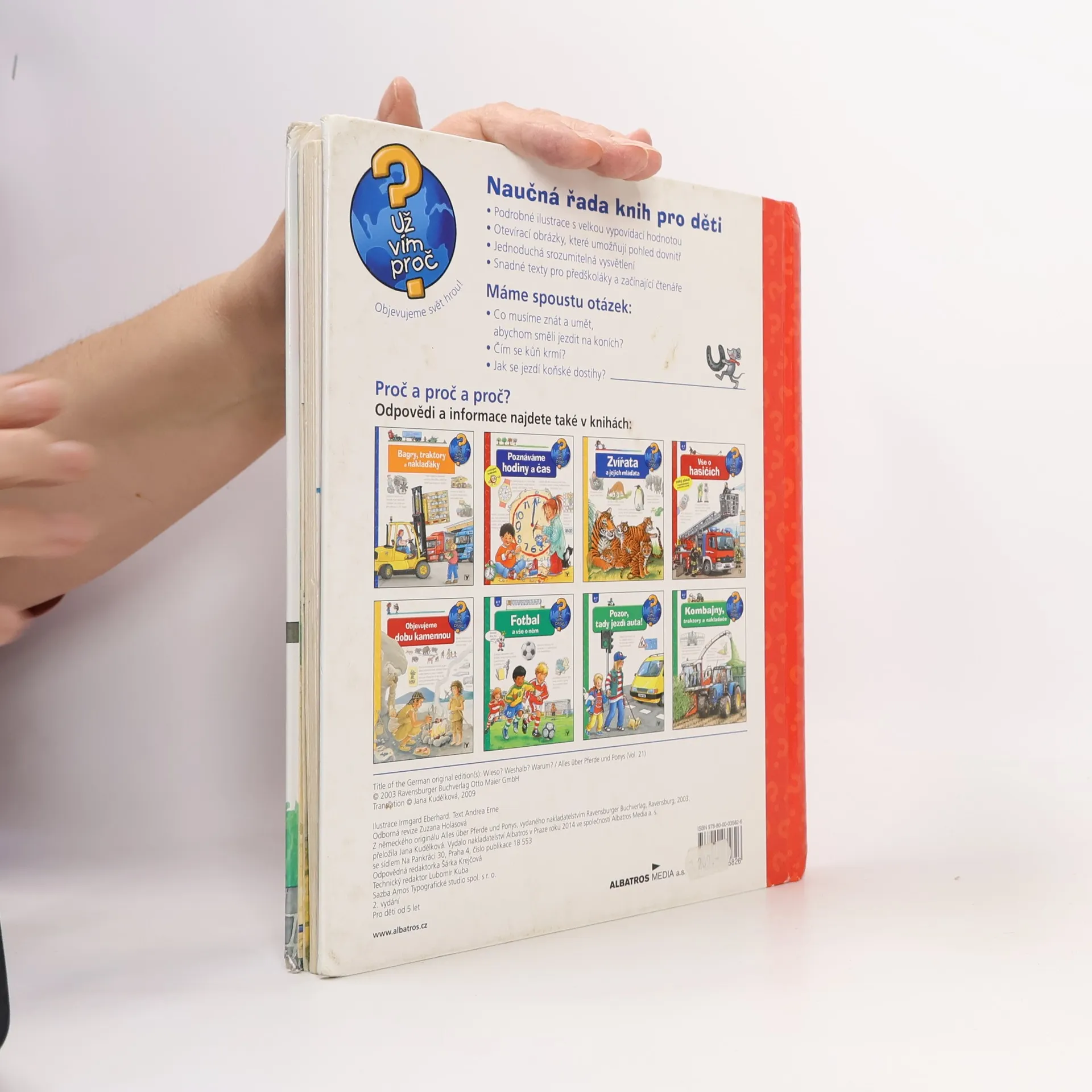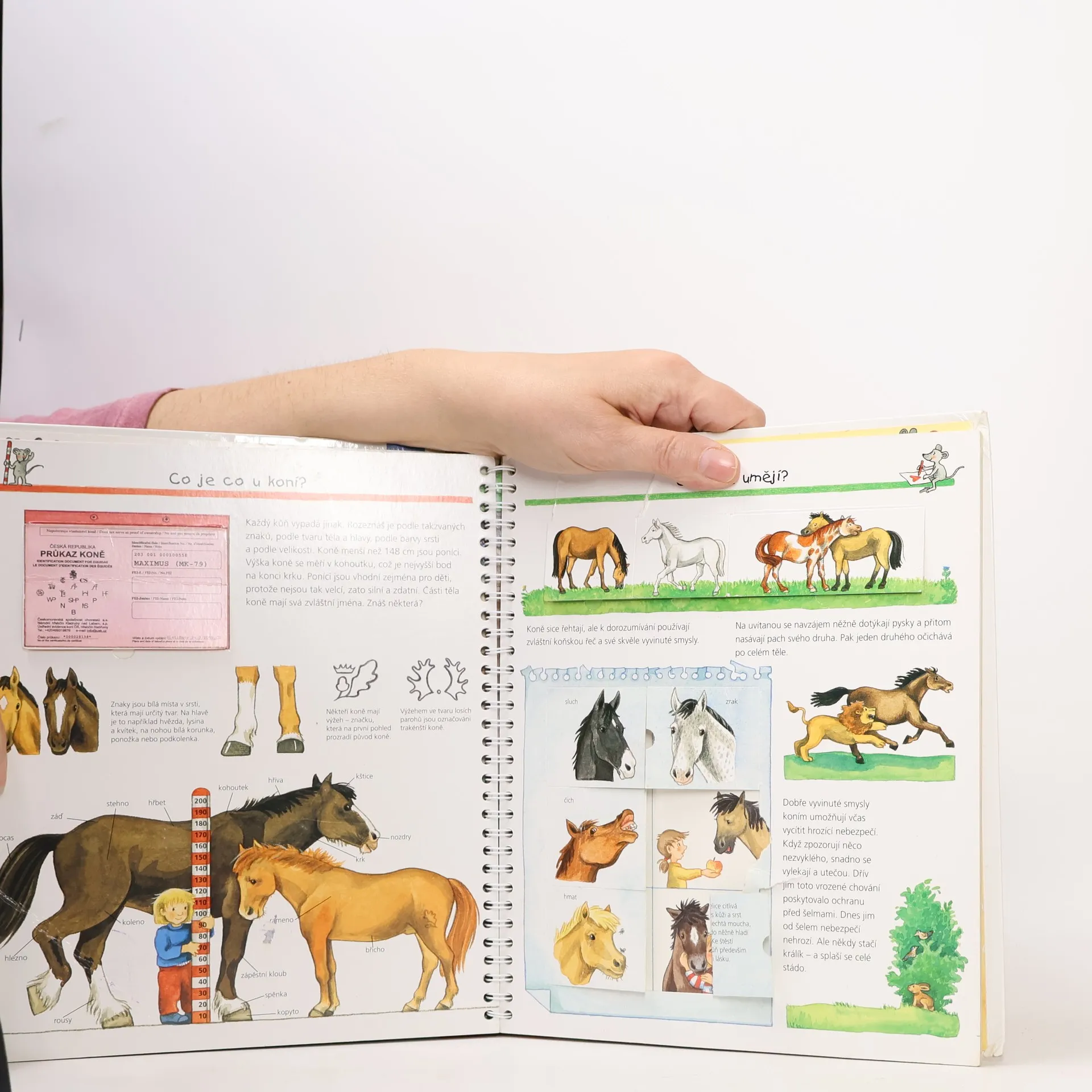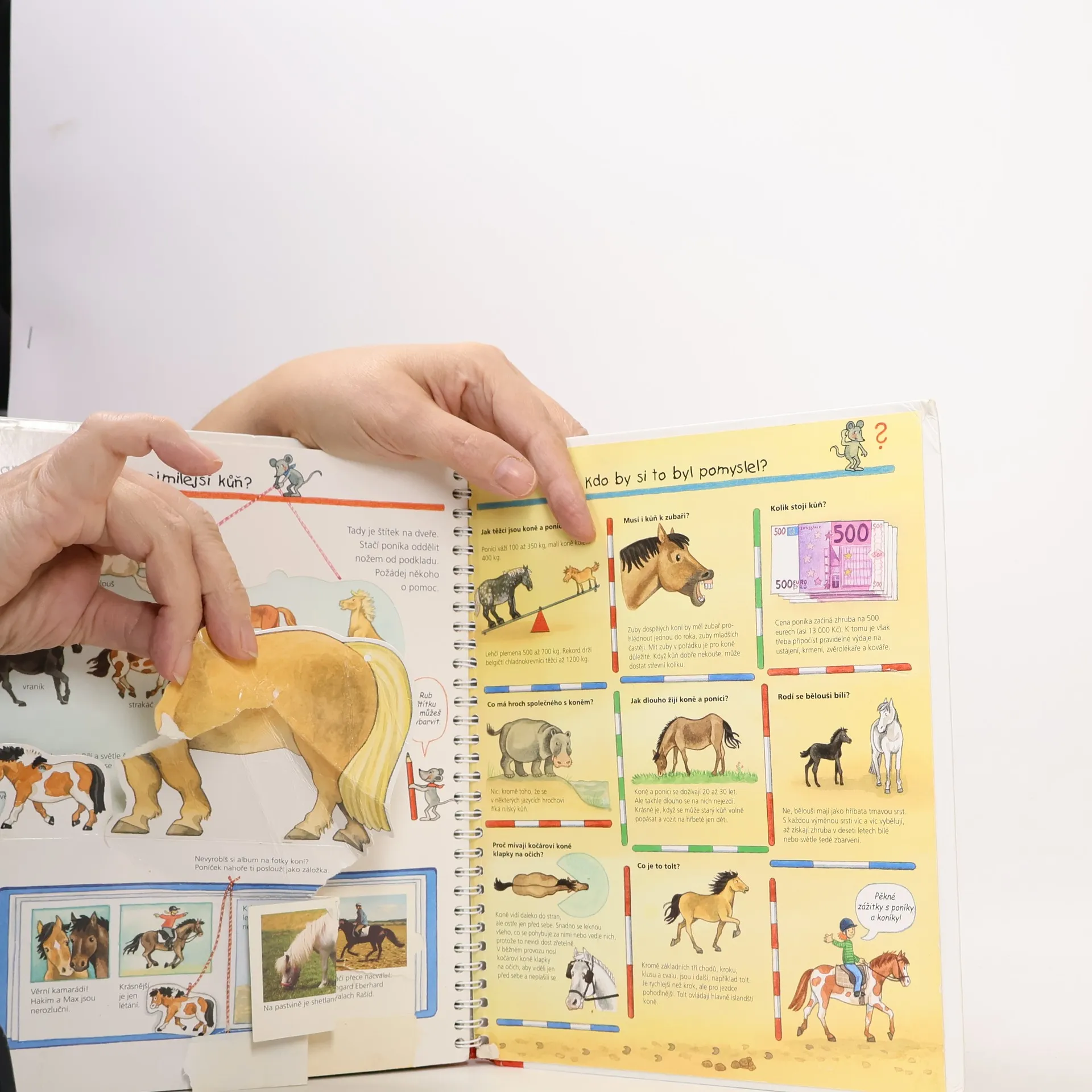Jak se staráme o koně? Co musíme znát, abychom směli jezdit na koni? Čím se kůň krmí? Jak se jezdí koňské dostihy? Na několika stránkách mnoho informací podaných slovy, a především obrázky! Dítě se dostane na jízdárnu i do přírody, naučí se pojmenovat každou část koňského těla a rozeznat druhy koní, dozví se, co mají koně rádi, kdy se cítí dobře a jak to poznáme. Najde tu i celou řadu zajímavostí. Zkrátka vše o koních a ponících v důsledném propojení textu s ilustracemi.