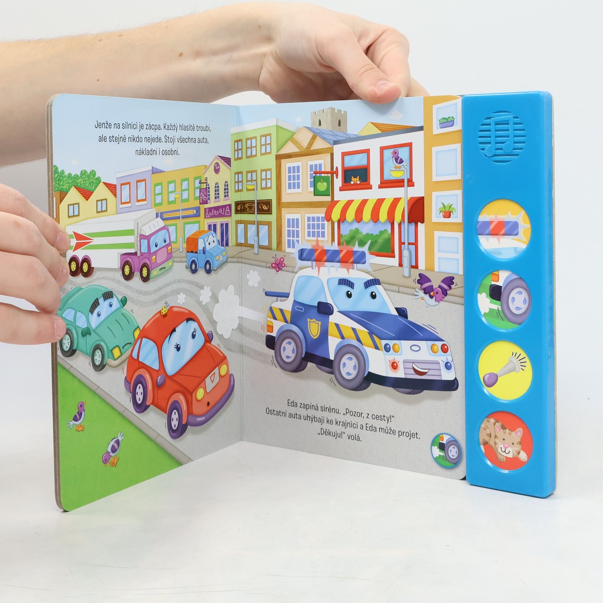 Policejní autíčko Eda řeší případ. Ztratila se kočička paní Mráčkové. Jak pátrání dopadne? Knížka se zvukovou lištou.