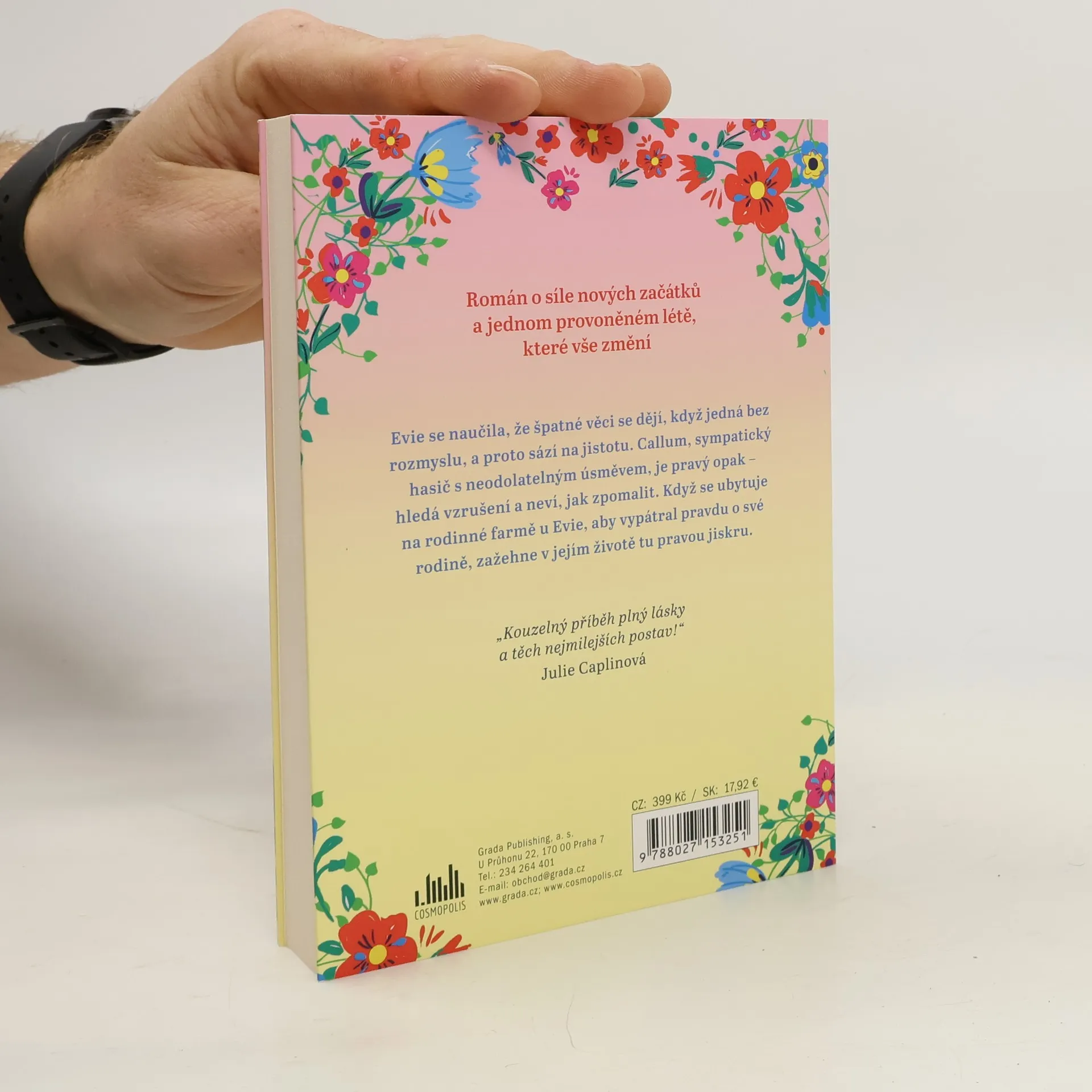 Evie se naučila, že špatné věci se dějí, když jedná bez rozmyslu, a proto sází na jistotu. Callum, sympatický hasič s neodolatelným úsměvem, je pravý opak – hledá vzrušení a neví, jak zpomalit. Když se ubytuje na rodinné farmě u Evie, aby vypátral pravdu o své rodině, zažehne v jejím životě tu pravou jiskru. „Kouzelný příběh plný lásky a těch nejmilejších postav.“ Julie Caplinová