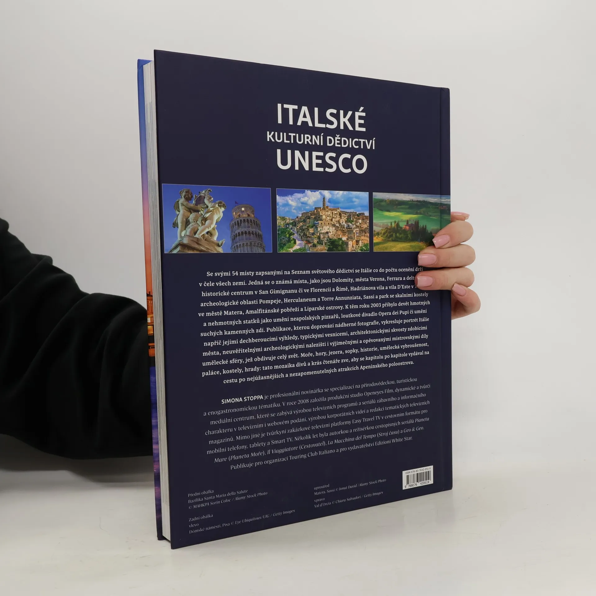 Itálie diktovala celoevropské trendy v oblasti architektury, malířství a sochařství od dávné antiky až po raný novověk. Nikoho tedy jistě nepřekvapí, že se kolébka evropské civilizace pyšní největším počtem památek zapsaných na seznam UNESCO. Kniha od italské novinářky a režisérky přírodovědných snímků Simony Stoppy nabízí ucelenou a chronologicky seřazenou kolekci všech 51 hmotných i nehmotných světových dědictví Apeninského poloostrova. Samozřejmostí jsou také působivé fotografie vybraných lokalit, jež prokládají výpravný text. Plejáda italských klenotů polahodí oku a potěší ducha všech milovníků přírodních krás, kultury a památek a také příznivce cestování, kteří zde jistě najdou inspiraci k návštěvě mnoha atraktivních oblastí, více či méně známých. Působivé dílo čtenáře povede po stopách starobylých kultur a civilizací, napříč dějištěm těch nejvýznamnějších historických událostí a zprostředkuje mu osobité kouzlo země, jež má stále co nabídnout.