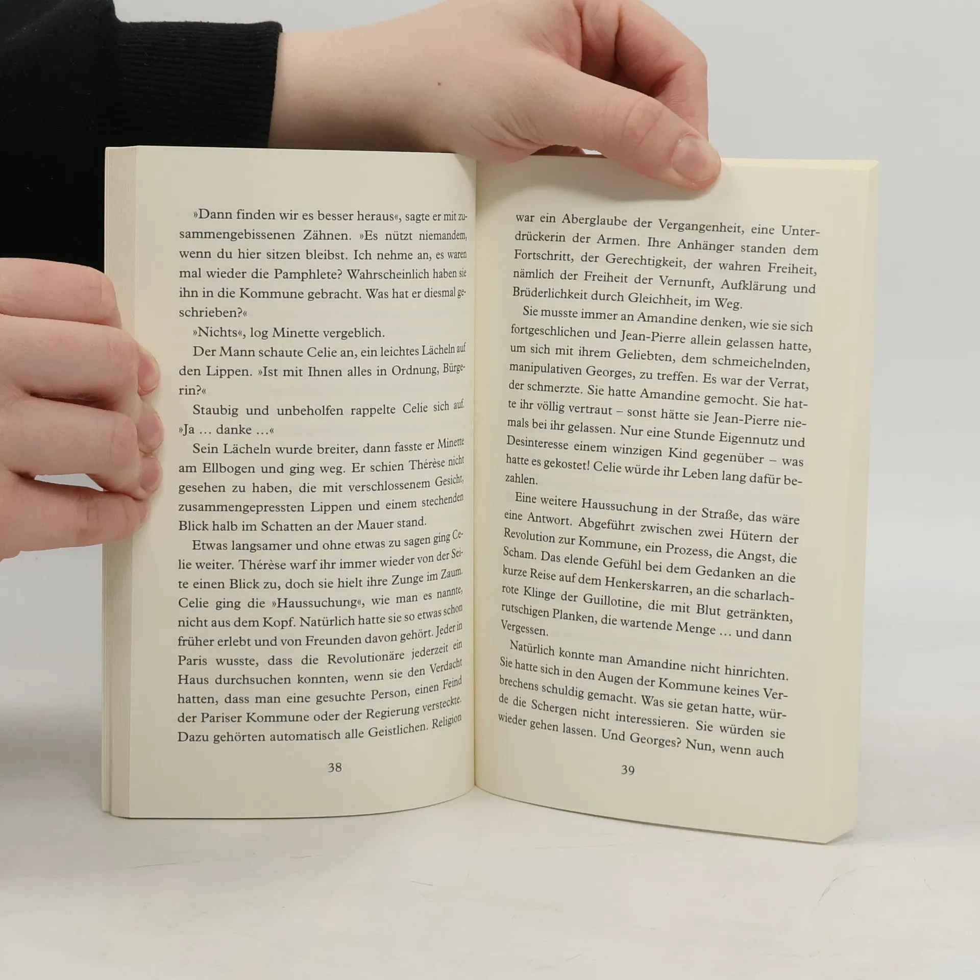Paris im dritten Jahr der Revolution. Die junge Celie gibt ihren Sohn Jean-Pierre in die Obhut ihrer Freundin Amandine. Als sie den Kleinen abends wieder abholen will, ist Jean-Pierre tot; er starb, während Amandine sich mit ihrem Geliebten vergnügte. Celie schwört bittere Rache und zeigt die beiden Liebenden als Verräter an. Aber noch bevor sie zum Schafott gebracht werden, marschieren die Preußen in Paris ein, und die Dinge entwickeln sich ganz anders, als von Celie gewollt. „Anne Perry würzt ihre Geschichte mit aufregendem Lokalkolorit und historischem Insiderwissen.“ Kirkus Reviews