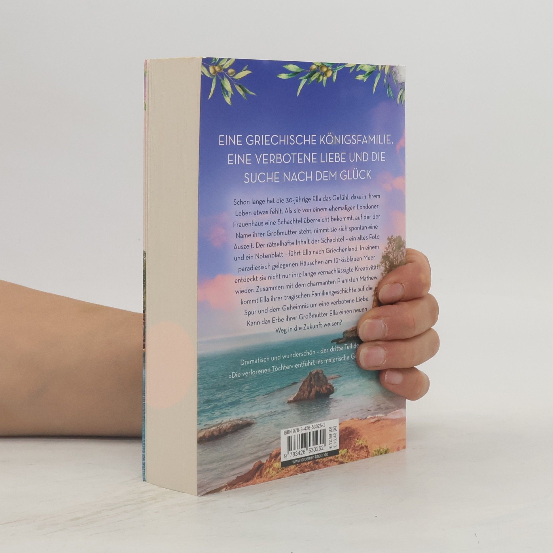 Ein tragisches Familiengeheimnis, eine malerische griechische Insel – und die große Liebe. Soraya Lane verführt auch mit ihrem dritten Familiengeheimnis-Roman zum Träumen , wenn sich die 30-jährige Ella aus London auf Spurensuche nach Griechenland begibt. Schon lange hat Ella das Gefühl, dass in ihrem Leben etwas fehlt. Es erscheint ihr wie ein Zeichen, als sie von einem ehemaligen Londoner Frauenhaus eine mysteriöse Schachtel überreicht bekommt, auf der der Name ihrer verstorbenen Großmutter steht. Die Schachtel enthält lediglich ein verblichenes Foto aus Griechenland und ein altes Notenblatt. Ella nimmt sich spontan eine Auszeit, um dem Rätsel auf den Grund zu gehen. Bei ihren Recherchen zu dem Notenblatt lernt sie den charmanten Violinisten Gabriel kennen, der das Lied darauf erkennt. Das Foto wiederum führt Ella auf eine kleine griechische Insel. In einem malerisch gelegenen Häuschen am türkisblauen Meer entdeckt sie nicht nur ihre lange vernachlässigte Kreativität wieder: Zusammen mit Gabriel kommt Ella ihrer tragischen Familiengeschichte auf die Spur und dem Geheimnis um eine verbotene Liebe. Kann das Erbe ihrer Großmutter Ella auch einen neuen Weg in die Zukunft weisen? »Die verheimlichte Tochter« ist der dritte Familiengeheimnis-Roman der ergreifenden Bestseller-Saga »Die verlorenen Töchter« von Soraya Lane. Jede der geheimnisvoll-atmosphärischen Liebesgeschichten entführt an einen Sehnsuchtsort und erzählt, wie eine von sieben jungen Frauen das Erbe ihrer Großmutter ergründet – perfekte Unterhaltung für Leser*innen von Lucinda Riley oder Katherine Webb. Die einzelnen Romane der Familiengsaga-Reihe können unabhängig voneinander gelesen werden und sind in folgender Reihenfolge erschienen: Die verlorene Tochter Die vermisste Tochter Die verheimlichte Tochter