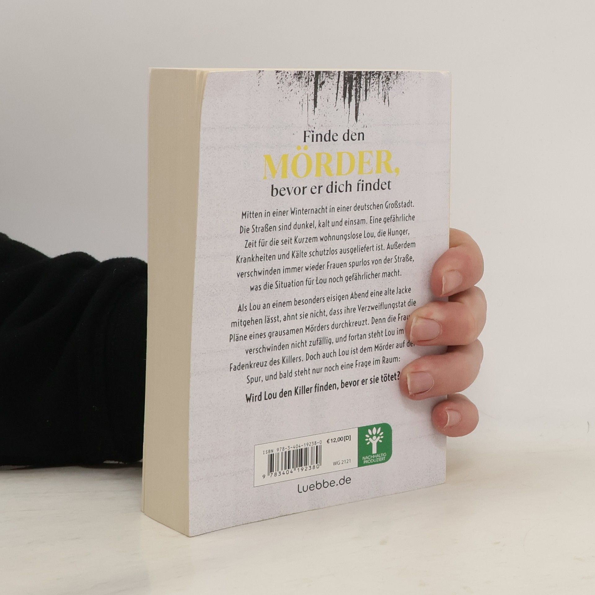 Finde den Mörder, bevor er dich findet Mitten in einer Winternacht in einer deutschen Großstadt. Die Straßen sind dunkel, kalt und einsam. Eine gefährliche Zeit für die seit kurzem wohnungslose Lou, die Hunger, Krankheiten und Kälte schutzlos ausgeliefert ist. Außerdem verschwinden immer wieder Frauen spurlos von der Straße, was die Situation für Lou noch gefährlicher macht. Als Lou an einem besonders eisigen Abend eine alte Jacke mitgehen lässt, ahnt sie nicht, dass ihre Verzweiflungstat die Pläne eines grausamen Mörders durchkreuzt. Denn die Frauen verschwinden nicht zufällig, und fortan steht Lou im Fadenkreuz des Killers. Doch auch Lou ist dem Mörder auf der Spur, und bald steht nur noch eine Frage im Raum: Wird Lou den Killer finden, bevor er sie tötet?