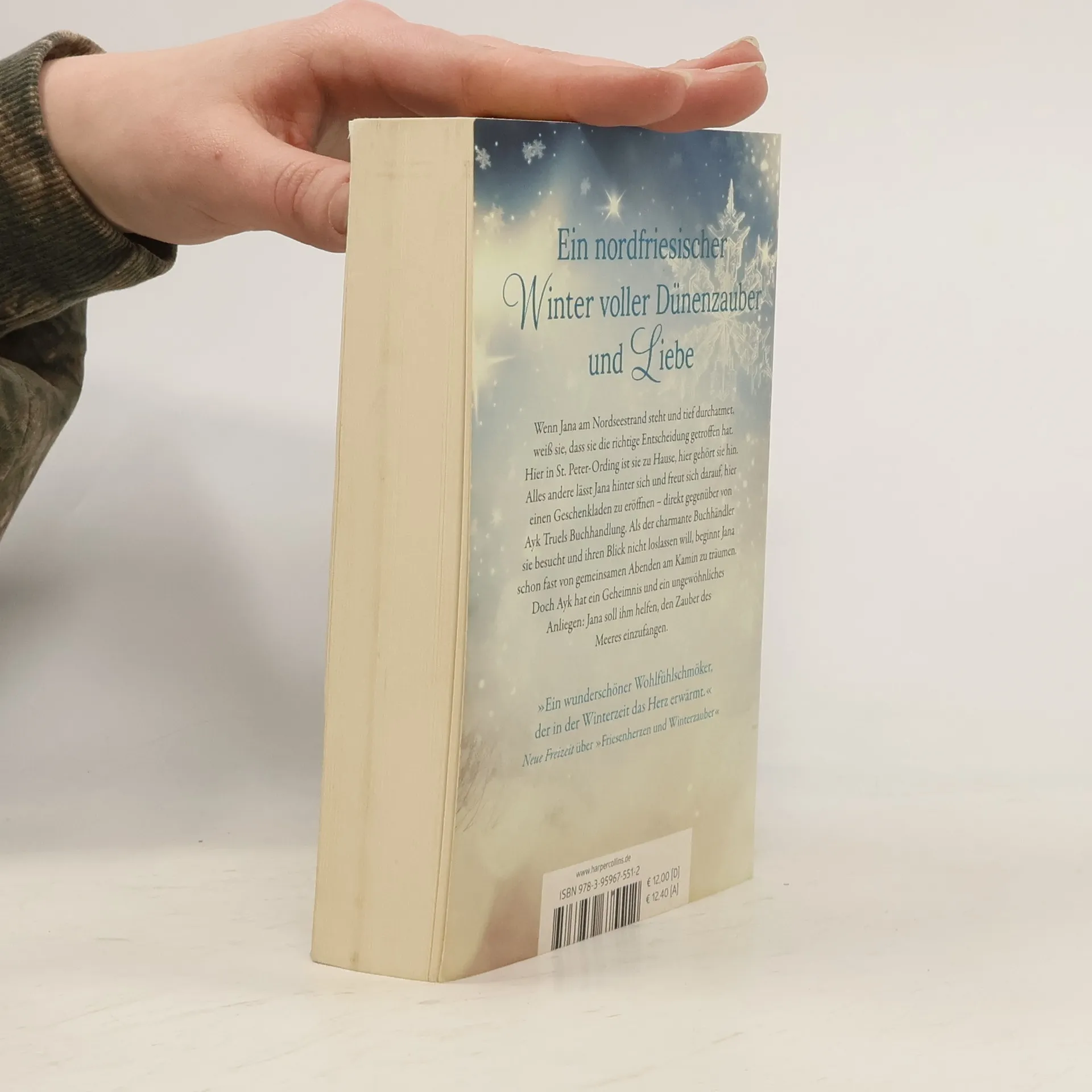 Ein nordfriesischer Winter voll Dünenzauber und Liebe Wenn Jana am Nordseestrand steht und tief durchatmet, weiß sie, dass sie die richtige Entscheidung getroffen hat. Hier in St. Peter-Ording ist sie zu Hause, hier gehört sie hin. Alles andere lässt Jana hinter sich und freut sich darauf, hier einen Geschenkladen zu eröffnen. Direkt gegenüber von Ayk Truels Buchhandlung. Als der Buchhändler auffallend oft herüberkommt, beginnt Jana schon fast von gemeinsamen Abenden am Kamin zu träumen. Doch Ayk hat ein Geheimnis und ein ungewöhnliches Anliegen: Jana soll ihm helfen, den Zauber des Meeres einzufangen.
