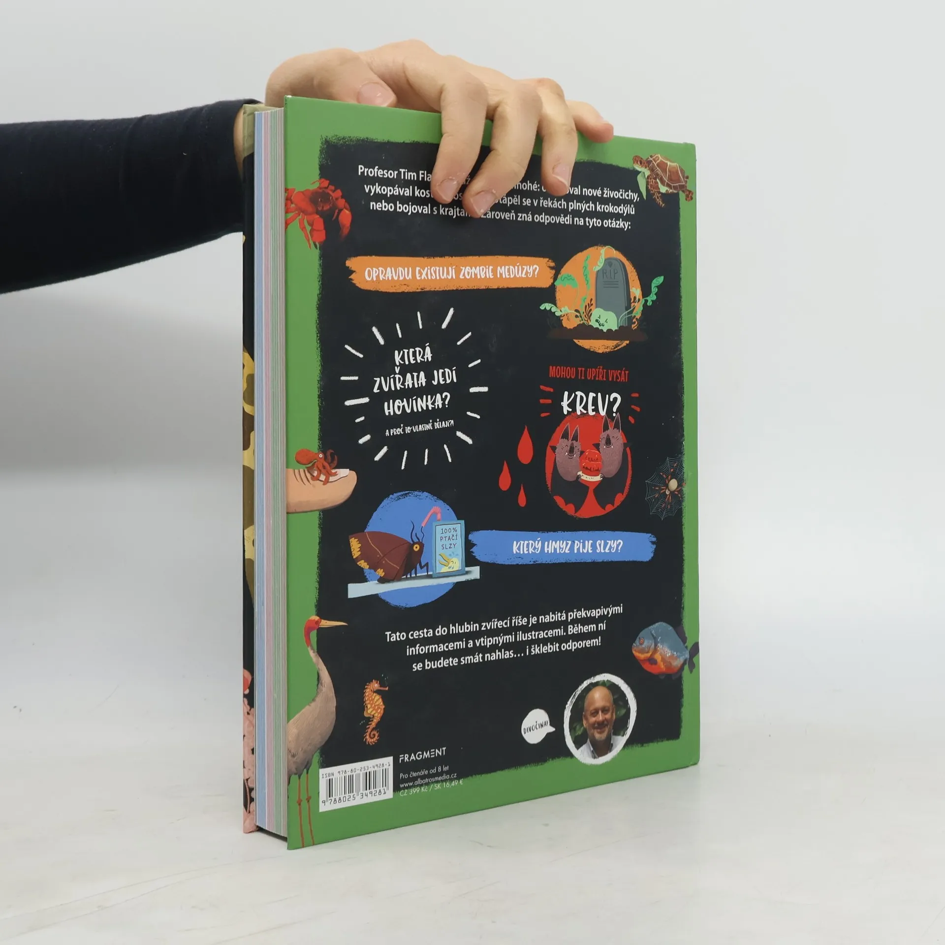 Profesor Tim Flannery už dokázal mnohé: objevoval nové živočichy, vykopával kosti dinosaurů nebo se potápěl v řekách plných krokodýlů. Zároveň zná odpovědi na tyto otázky: Opravdu existují zombie medúzy? Která zvířata jedí hovínka? A proč to vlastně dělají?! Mohou ti upíři vysát krev? Který hmyz pije slzy? Tato cesta do hlubin zvířecí říše je nabitá překvapivými informacemi a vtipnými ilustracemi. Během ní se budete smát nahlas… i šklebit odporem!