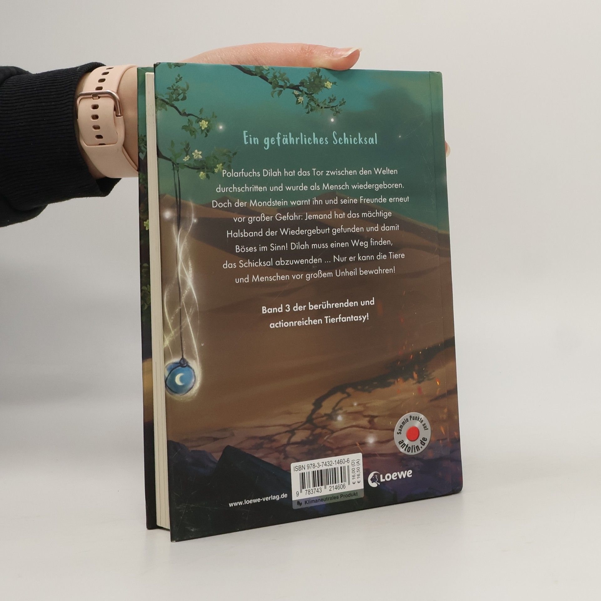 Polarfuchs Dilah hat das Tor zwischen den Welten durchschritten und wurde als Mensch wiedergeboren. Doch der Mondstein warnt ihn und seine Freunde erneut vor großer Gefahr: Jemand hat das mächtige Halsband der Wiedergeburt gefunden und damit Böses im Sinn! Dilah muss einen Weg finden, das Schicksal abzuwenden … Nur er kann die Tiere und Menschen vor großem Unheil bewahren!