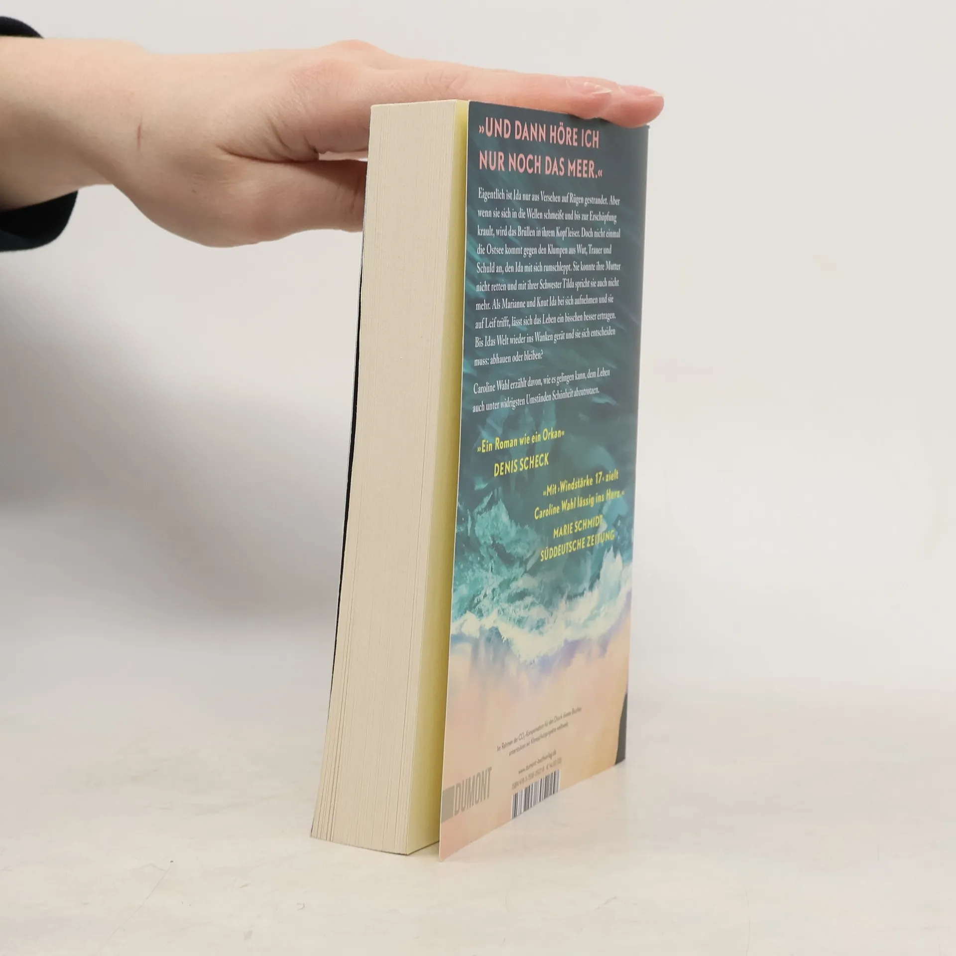 Ida hat nichts bei sich außer dem alten, verschrammten Hartschalenkoffer ihrer Mutter, ein paar Lieblingsklamotten und ihrem MacBook, als sie ihr Zuhause verlässt. Es ist wahrscheinlich ein Abschied für immer von der Kleinstadt, in der sie ihr ganzes bisheriges Leben verbracht hat. Im Abschiednehmen ist Ida richtig schlecht; sie hat es vor zwei Monaten nicht einmal auf die Beerdigung ihrer Mutter geschafft. Am Bahnhof sucht sie sich den Zug aus, der am weitesten wegfährt – auf keinen Fall will sie zu ihrer Schwester Tilda nach Hamburg –, und landet auf Rügen. Ohne Plan, nur mit einem großen Klumpen aus Wut, Trauer und Schuld im Bauch, streift sie über die Ostseeinsel. Und trifft schließlich auf Knut, den örtlichen Kneipenbesitzer, und seine Frau Marianne, die Ida kurzerhand bei sich aufnehmen. Zu dritt frühstücken sie jeden Morgen Aufbackbrötchen, den Tag verbringt Ida dann mit Marianne, sie walken gemeinsam durch den Wald oder spielen Skip-Bo, abends arbeitet Ida mit Knut in der »Robbe«. Und sie lernt Leif kennen, der ähnlich versehrt ist wie sie. Auf einmal ist alles ein bisschen leichter, erträglicher in Idas Leben. Bis ihre Welt kurz darauf wieder aus den Angeln gehoben wird.