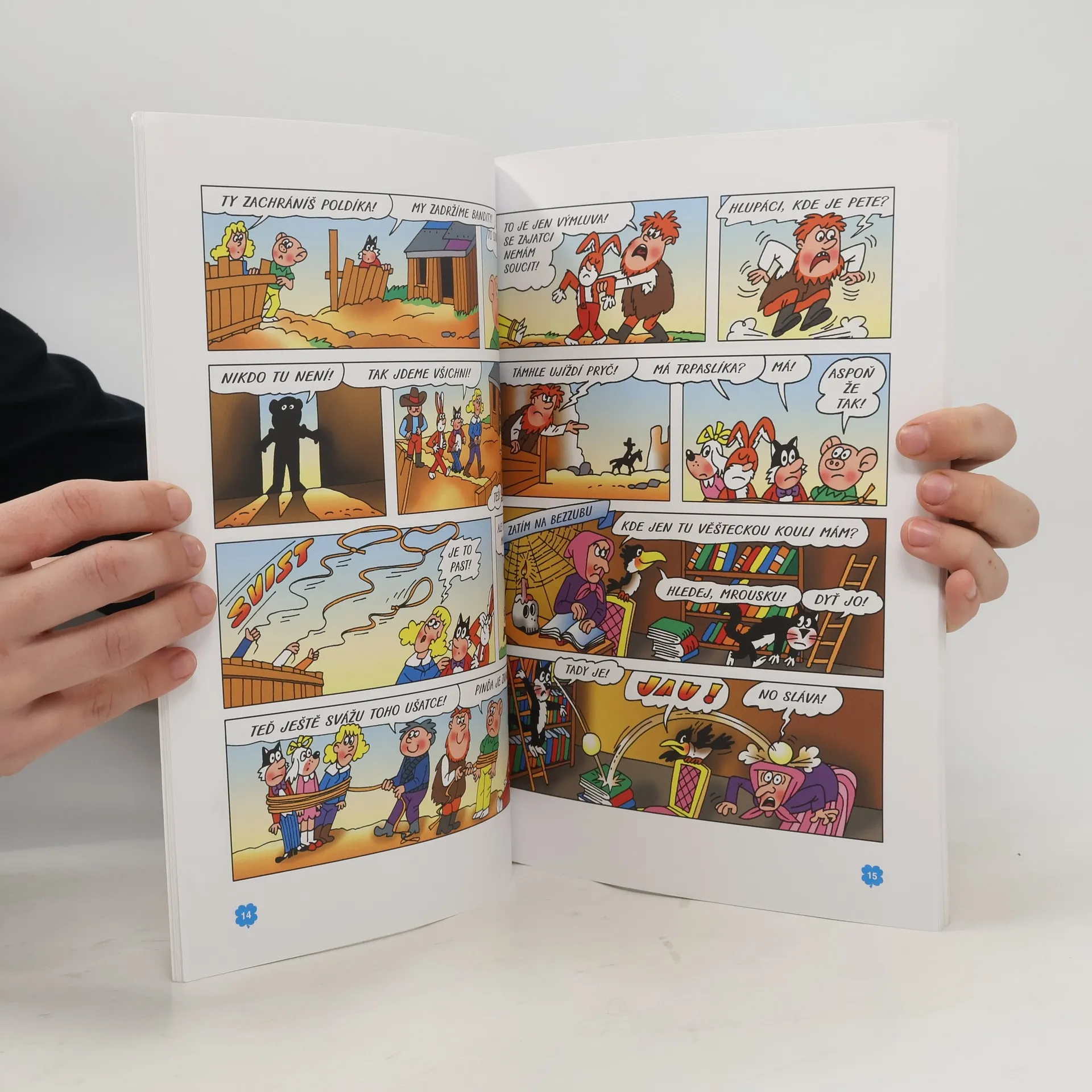 V knize jsou dva příběhy, Texaské rodeo a Jedenácté patro. V prvém se Čtyřlístek se strašidly z Bezzubu dostane až do Texasu, kde pátrají po ztraceném kamarádovi. V druhém příběhu Čtyřlístek zabloudí výtahem do jiných světů, kde prožívá nová skvělá dobrodružství, např. s Aldebaranskými čmely.