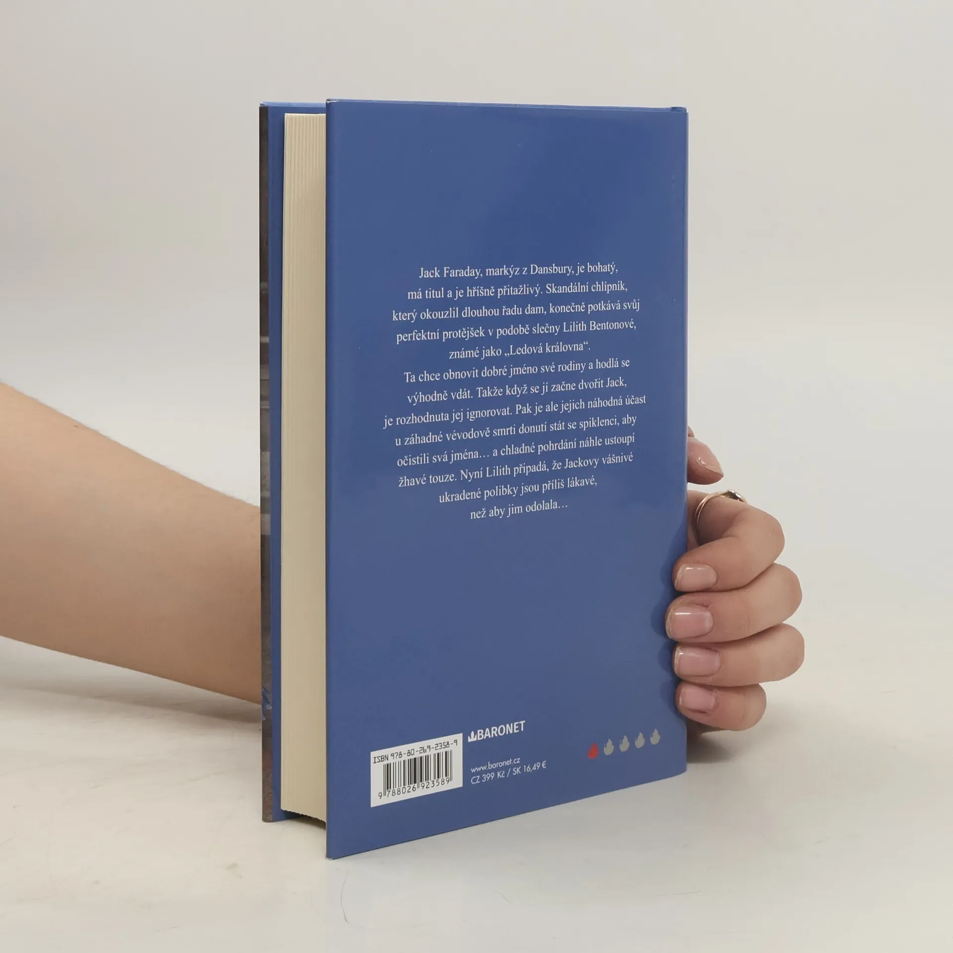 Drzý prostopášník, chladná kráska, vynucené spiklenectví a neodolatelná touha... Romance ze staré Anglie z pera americké autorky. Jack Faraday, markýz z Dansbury, je bohatý, má titul a je hříšně přitažlivý. Skandální chlípník, který okouzlil dlouhou řadu dam, konečně potkává svůj perfektní protějšek v podobě slečny Lilith Bentonové, známé jako "Ledová královna". Ta chce obnovit dobré jméno své rodiny a hodlá se výhodně vdát. Takže když se jí začne dvořit Jack, je rozhodnuta jej ignorovat. Pak je ale jejich náhodná účast u záhadné vévodovy smrti donutí stát se spiklenci, aby očistili svá jména, a chladné pohrdání náhle ustoupí žhavé touze. Nyní Lilith připadá, že Jackovy vášnivé ukradené polibky jsou příliš lákavé, než aby jim odolala... Nakladatelská anotace.