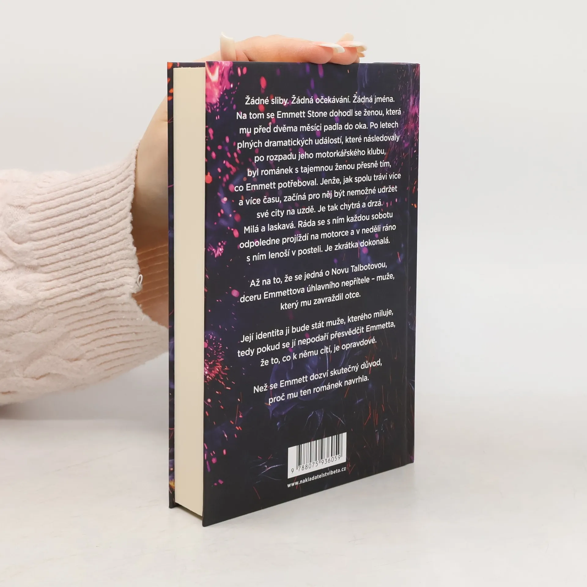Šestý díl temné romantické série z prostředí motorkářských gangů. Žádné sliby. Žádná očekávání. Žádná jména. Na tom se Emmett Stone dohodl se ženou, která mu před dvěma měsíci padla do oka. Po letech plných dramatických událostí, které následovaly po rozpadu jeho motorkářského klubu, byl románek s tajemnou ženou přesně tím, co Emmett potřeboval. Jenže, jak spolu tráví více a více času, začíná pro něj být nemožné udržet své city na uzdě. Je tak chytrá a drzá. Milá a laskavá. Ráda se s ním každou sobotu odpoledne projíždí na jeho motorce a v neděli ráno lenoší v jeho posteli. Je zkrátka dokonalá. Až na to, že se jedná o Novu Talbotovou, dceru Emmettova úhlavního nepřítele - muže, který mu zavraždil otce. Její identita bude Novu stát muže, který si získal její srdce, tedy pokud se jí nepodaří přesvědčit Emmetta, že její city jsou opravdové. Než se Emmett dozví skutečný důvod, proč ten románek navrhla. Nakladatelská anotace.