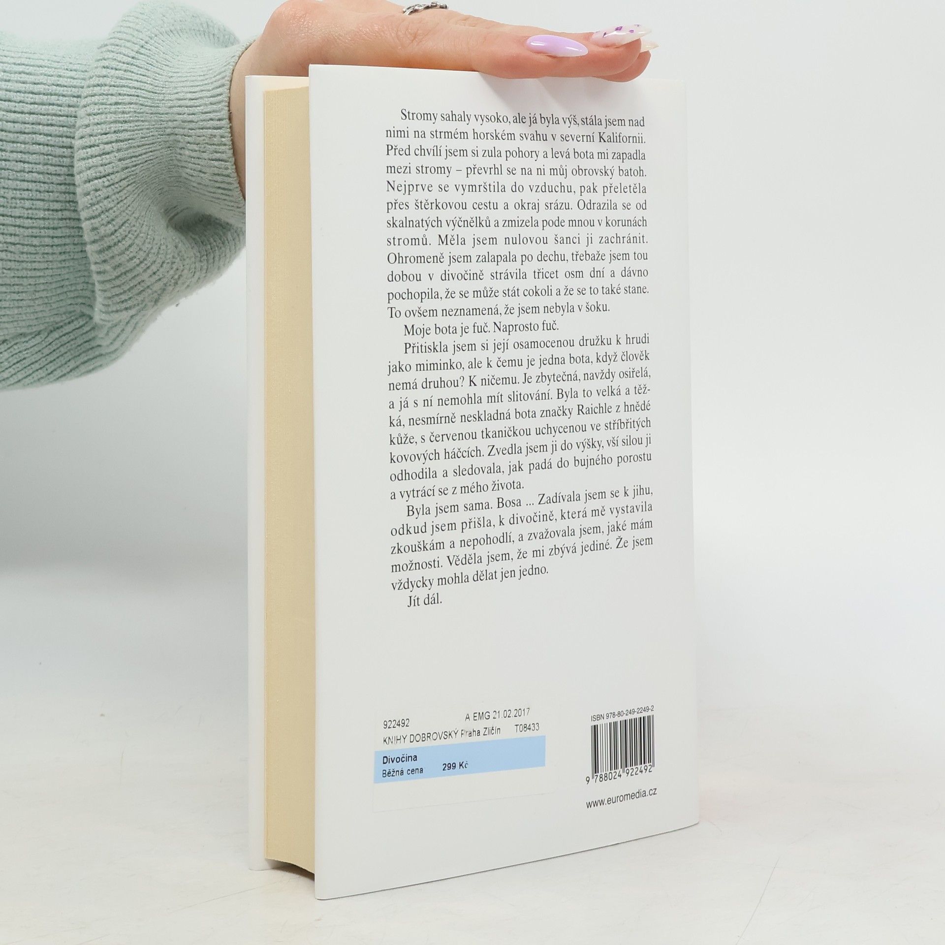 Pozoruhodně upřímný autobiografický příběh ženy, která se po traumatických událostech rozhodne vyrazit na 1 770 kilometrů dlouhou pěší pouť. V šestadvaceti letech si Cheryl Strayedová, po smrti své matky a krachu svého manželství, myslela, že přišla o vše. Měla pocit, že již nemá co ztratit a učinila nejimpulzivnější rozhodnutí svého života: odhodlala se sama ujít vysokohorskou trasu Pacifik Crest Trail od Mohavské pouště přes celou Kalifornii a Oregon až do státu Washington. Hrdinka, bez jakýchkoli znalostí o přežití v divoké přírodě, se nevyhne střetnutí s chřestýši a medvědy, překonává úmorná vedra či rekordní sníh. Napínavé vyprávění okořeněné humorem živě zachycuje strach i radost mladé ženy tvrdě si razící cestu k cíli navzdory mizivé šanci na úspěch. Pouť ji téměř dožene k šílenství.