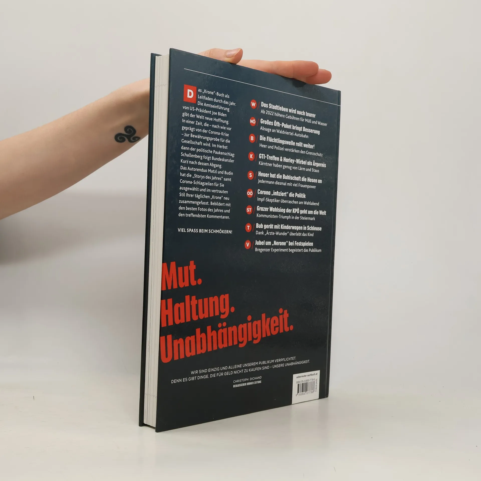 Globale Ängste rund um die Corona-Pandemie überschatten den Jahresbeginn. Doch mit der Amtseinführung von Joe Biden als 46. Präsidenten der Vereinigten Staaten wächst weltweite Hoffnung, dass die USA erneut zu einem verlässlichen Partner werden. Innenpolitisch kommt es beim Ibiza-Untersuchungsausschuss zum parteipolitischen Hickhack. Das grün-türkise Öko-Paket sorgt zwar für oppositionellen Gegenwind, aber die Regierungsvorlage zur Energiewende weist in die richtige Richtung. Die Skination Österreich wiederum jubelt über den Medaillenregen bei der WM in Cortina, wo rot-weiß-rote Athleten fünf Mal Gold erobern. Weltweiten Wirbel entfacht ein brisantes Interview von Englands Prinz Harry und Herzogin Meghan über Rassismus im Buckingham Palace. Diese sowie alle packenden Geschichten und Adabei-Storys, die Österreich bewegten, bringen die „Schlagzeilen 2021“. Alles in allem 140 Seiten Zeitgeschichte, bebildert mit 500 der besten Fotos des Jahres und garniert mit den treffendsten „Krone“-Kommentaren.