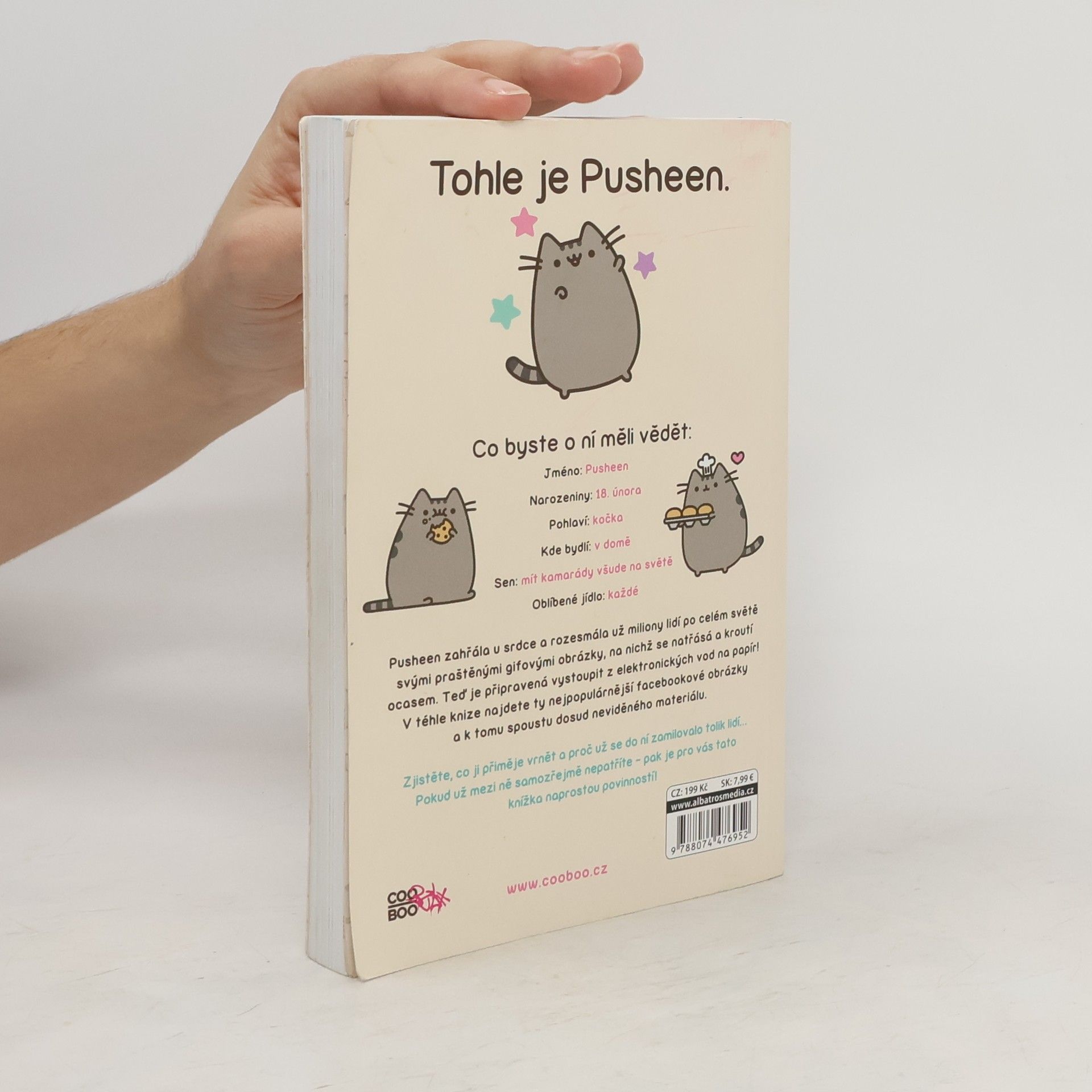 Pusheen zahřála u srdce a rozesmála už miliony lidí po celém světě svými praštěnými gifovými obrázky, na nichž se natřásá a kroutí ocasem. Teď je připravená vystoupit z elektronických vod na papír! V téhle knize najdete ty nejpopulárnější facebookové obrázky a k tomu spoustu dosud neviděného materiálu. Zjistěte, co ji přiměje vrnět a proč už se do ní zamilovalo tolik lidí… Pokud už mezi ně samozřejmě nepatříte – pak je pro vás tato knížka naprostou povinností!