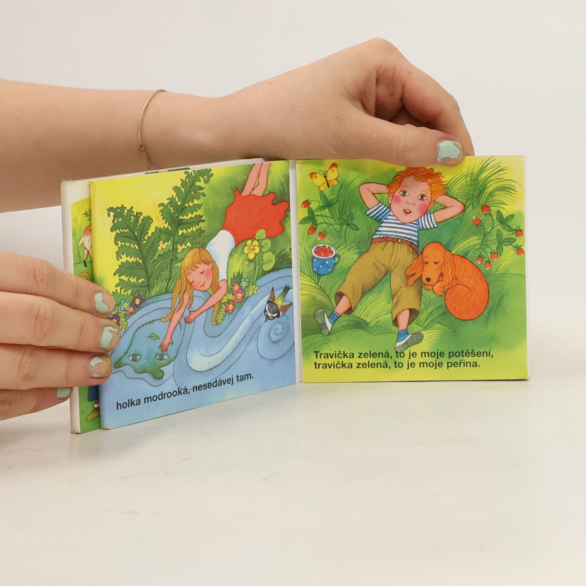 Rozkládací šestnáctiobrázkové leporelo pro děti od dvou let, s půvabnými obrázky na motivy nejznámějších dětských popěvků - Ovčáci, čtveráci, Holka modrooká, Travička zelená a dalších. schovat popis