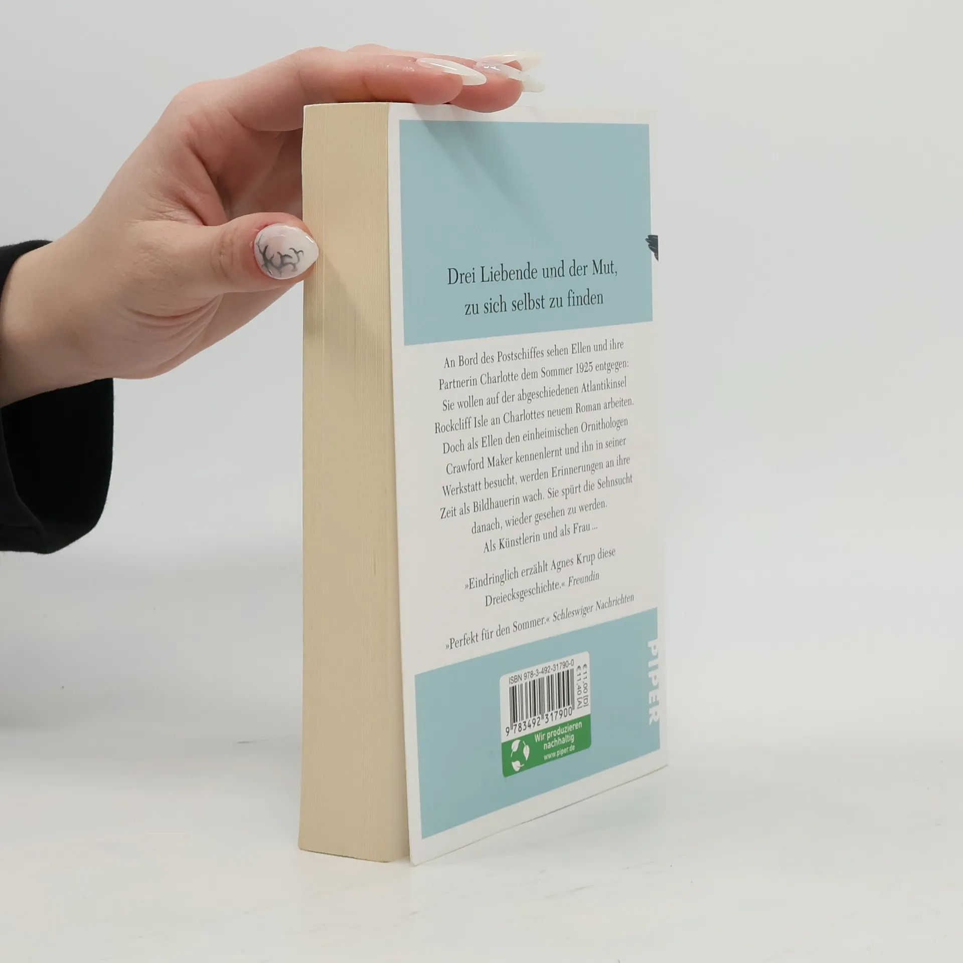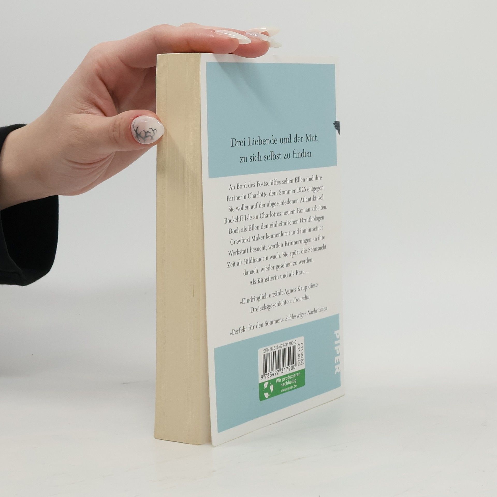 Drei Liebende und der Mut zu sich selbst zu finden An Bord des Postschiffes sehen Ellen und ihre Partnerin Charlotte dem Sommer 1925 entgegen: Sie wollen auf der abgeschiedenen Atlantikinsel Rockcliff Isle an Charlottes neuem Roman arbeiten. Doch als Ellen den einheimischen Ornithologen Crawford Maker kennenlernt und ihn in seiner Werkstatt besucht, werden Erinnerungen an ihre Zeit als Bildhauerin wach. Sie spürt die Sehnsucht danach, wieder gesehen zu werden. Als Künstlerin und als Frau. Agnes Krup erzählt die ebenso mitreißende wie zeitlose Geschichte dreier Liebender, die ein Leben gegen jede Konvention führen.