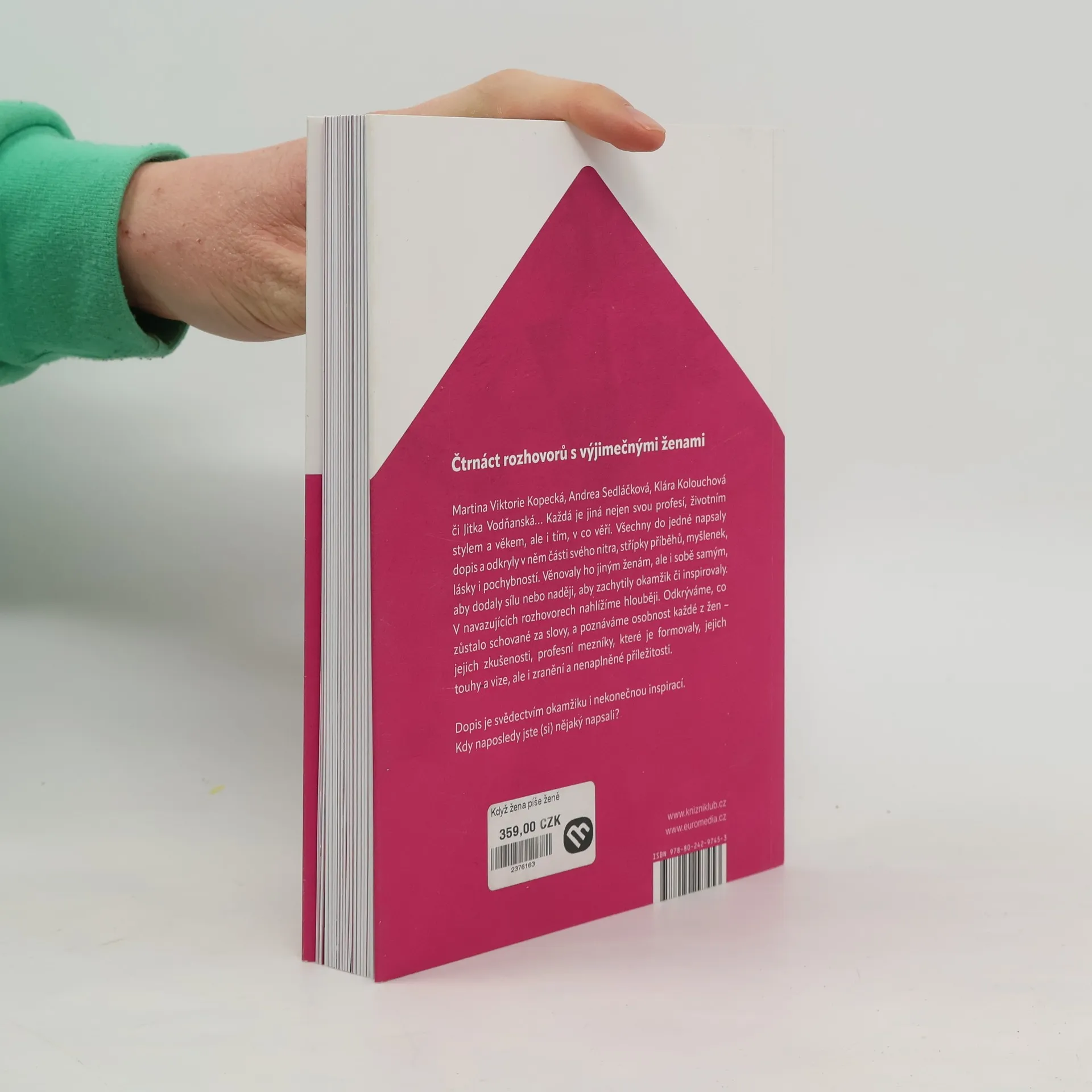 Čtrnáct rozhovorů s výjimečnými ženami. Martina Viktorie Kopecká, Andrea Sedláčková, Klára Kolouchová či Jitka Vodňanská… Každá je jiná nejen svou profesí, životním stylem a věkem, ale i tím, v co věří. Všechny do jedné napsaly dopis a odkryly v něm části svého nitra, střípky příběhů, myšlenek, lásky i pochybností. Věnovaly ho jiným ženám, ale i sobě samým, aby dodaly sílu nebo naději, aby zachytily okamžik či inspirovaly. V navazujících rozhovorech nahlížíme hlouběji. Odkrýváme, co zůstalo schované za slovy, a poznáváme osobnost každé z žen – jejich zkušenosti, profesní mezníky, které je formovaly, jejich touhy a vize, ale i zranění a nenaplněné příležitosti. Dopis je svědectvím okamžiku i nekonečnou inspirací. Kdy naposledy jste (si) nějaký napsali? Abhejali Bernardová, Zlata Holušová, Kristina Höschlová, Veronika Sovadina Kašáková, Klaudie Kmentová, Klára Kolouchová, Martina Viktorie Kopecká, Eva Le Peutrec, Kristína Nemčková, Petra Nesvačilová, Pavlína Saudková, Andrea Sedláčková, Nora Vlášková, Jitka Vodňanská