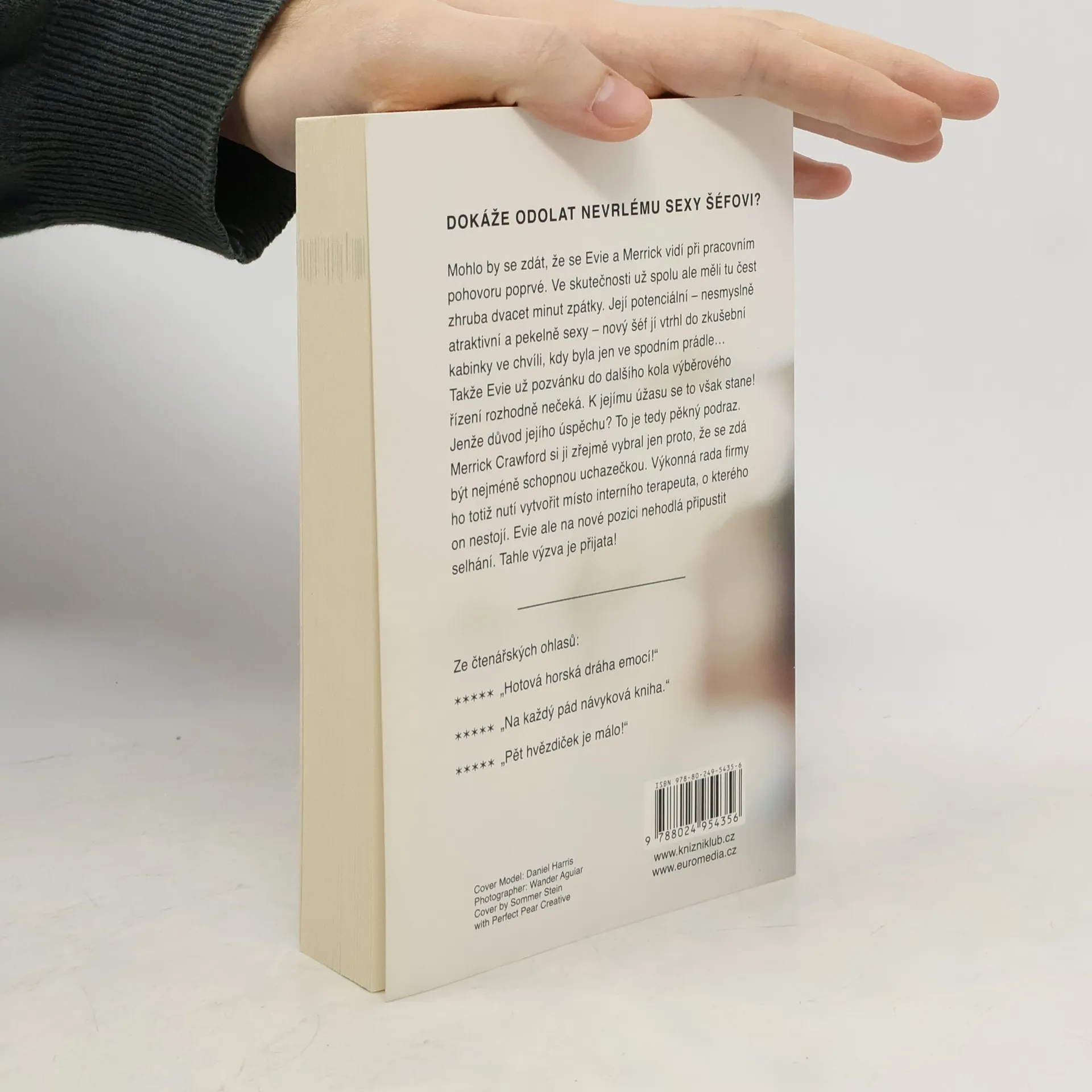 Vtipný milostný román o vztahu Merricka, který se stane šéfem psychoterapeutky Evie a který nezačal zrovna nejlépe. Mohlo by se zdát, že se Evie a Merrick vidí při pracovním pohovoru poprvé. Ve skutečnosti už spolu ale měli tu čest zhruba dvacet minut zpátky. Její potenciální, nesmyslně atraktivní a pekelně sexy nový šéf vtrhl do zkušební kabinky ve chvíli, kdy byla jen ve spodním prádle... Takže tu práci Evie nejspíš nedostane. Když se však stane opak, nemůže tomu uvěřit. Nicméně Evie se toho nebojí, dokáže svému novému šéfovi, že na to má. Musí ale dávat pozor, aby se nespálila... Nakladatelská anotace.