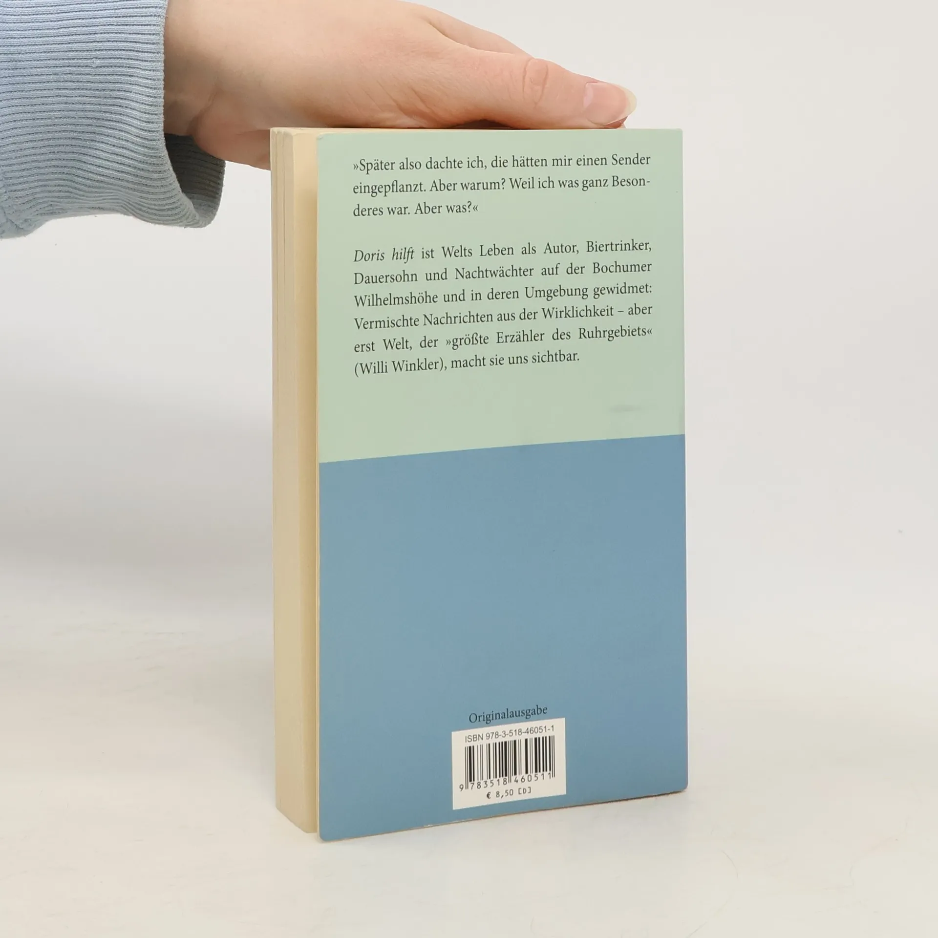 »Doris hilft« steht an einer Wand der Bochumer Uni, an der Wolfgang Welt in seinem Wahn vorbeiläuft. Doris, so hieß doch die Bedienung in seinem Stammlokal, die er geliebt hatte – Doris hilft ist der vierte Roman, den Welt seinem Leben als Autor, Biertrinker, Dauersohn und Nachtwächter auf der Bochumer Wilhelmshöhe und in deren Umgebung widmet. Lauter Nachrichten aus der Wirklichkeit (um 1990), aber es braucht jemanden wie Welt, den »größten Erzähler des Ruhrgebiets« (Willi Winkler), der sie uns aufgreift, »anleuchtet«, sichtbar macht. Im Anhang: »Bob Dylan & Buddy Holly. Kein Vergleich«, einer der besten Artikel des Musikjournalisten Wolfgang Welt aus dem Jahr 1991.