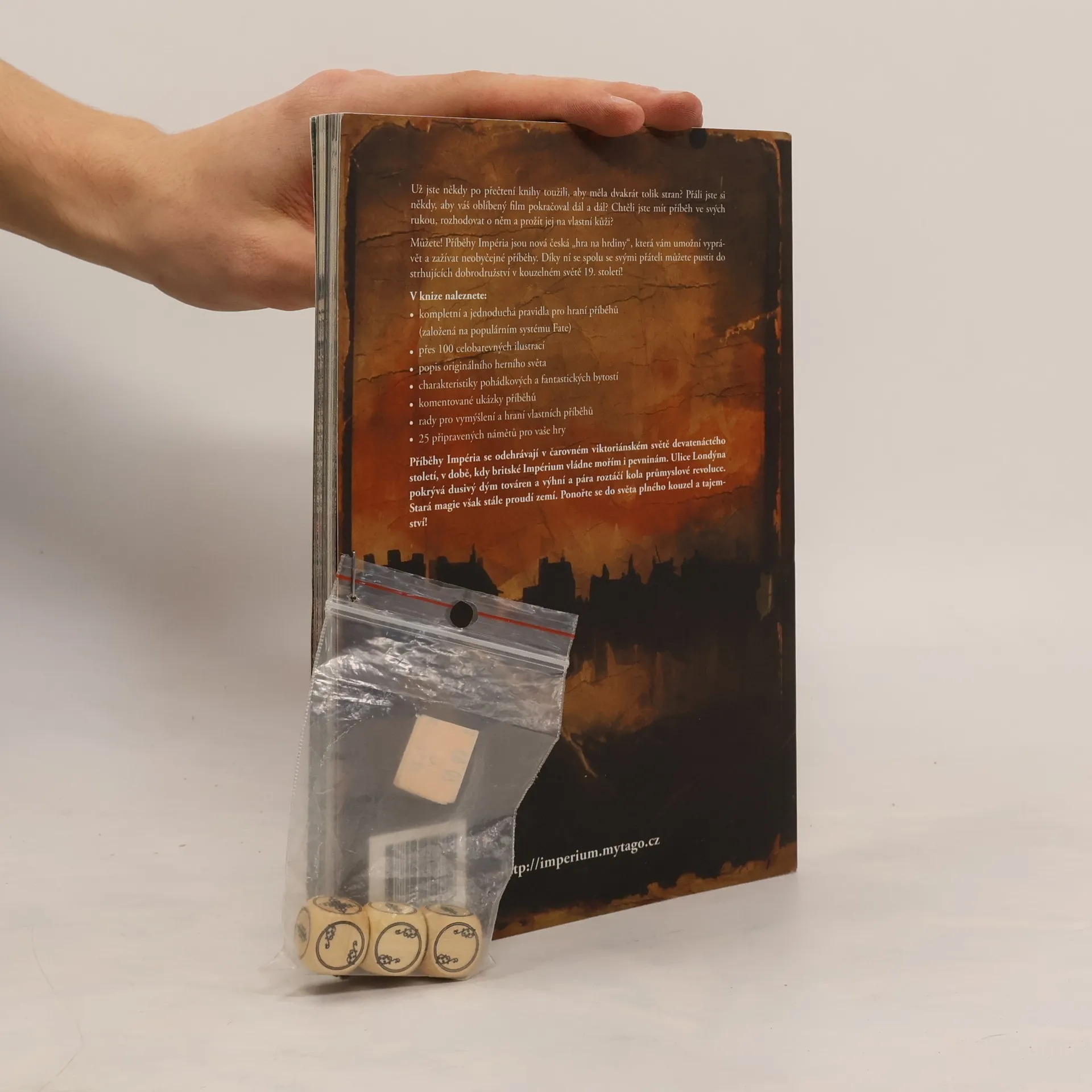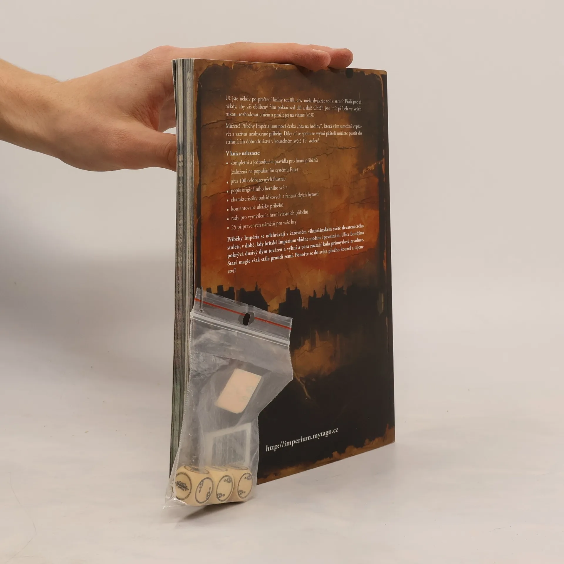 Nová česká hra na hrdiny přináší fascinující příběhy v magickém světě devatenáctého století. V Londýně, zahaleném v mlze, se setkávají mágové, skřítci a elfové, zatímco skřeti, trpaslíci a faunové žijí mezi lidmi. Svět Impéria je plný tajemství britských ostrovů, kde dolmeny a kamenné kruhy připomínají dávné obyvatele. V noci se hvozdy ozývají vytím vlkodlaků a měsíční světlo osvětluje jednorožce. Duchové se vracejí mezi živé, andělé a démoni zasahují do lidských záležitostí. Toužíte po příbězích, které by mohly trvat déle? Hledáte možnost prožít dobrodružství na vlastní kůži? Tato hra na hrdiny vám to umožní! Spolu s přáteli se můžete vrhnout do vzrušujících dobrodružství. Kniha obsahuje jednoduchá pravidla, přes 100 barevných ilustrací, popis originálního herního světa, charakteristiky fantastických bytostí, komentované ukázky příběhů, rady pro vytváření vlastních příběhů a 25 připravených námětů pro vaše hry. Vstupte do kouzelného viktoriánského světa, kde stará magie stále proudí a čeká na vaše objevování!
