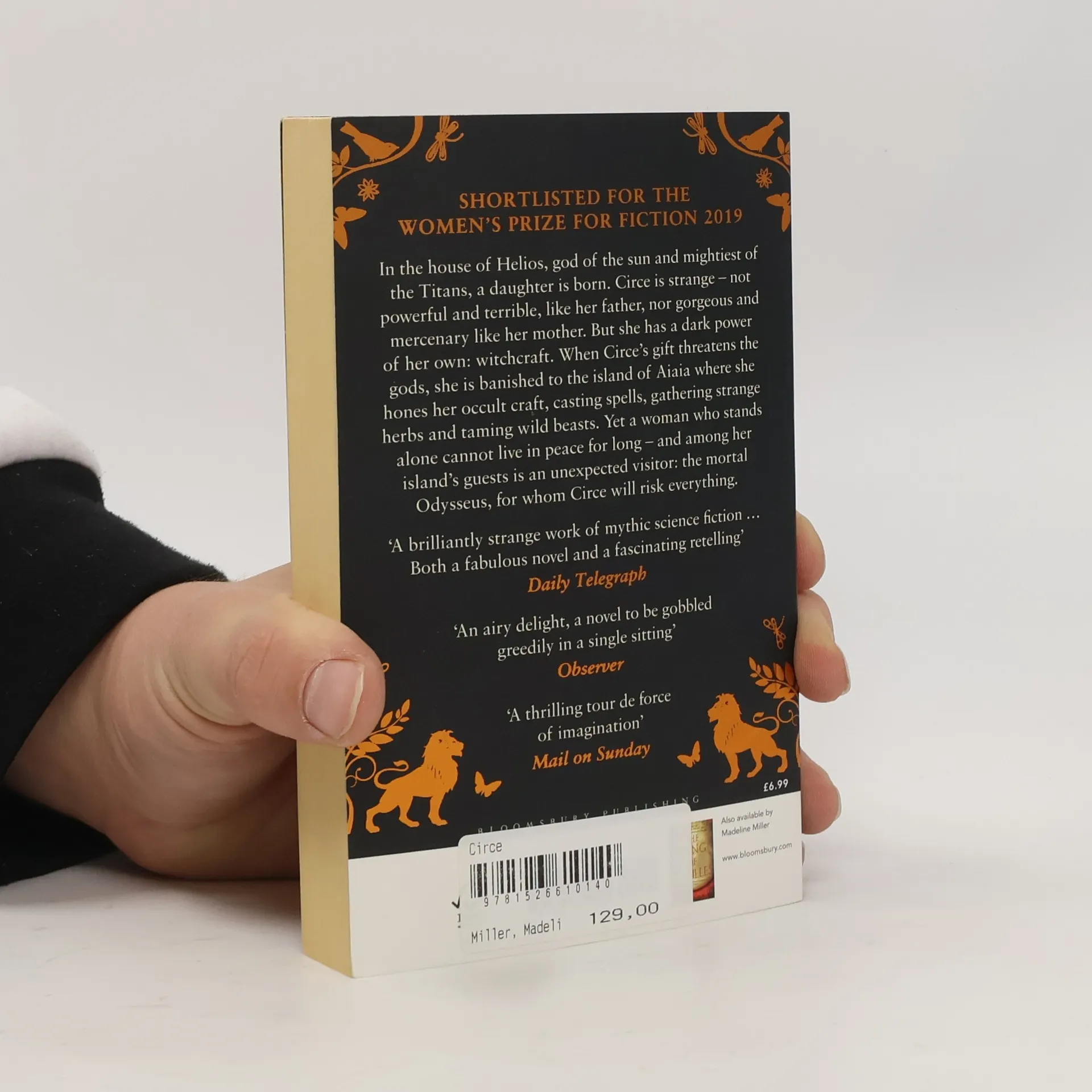 In the house of Helios, god of the sun and mightiest of the Titans, a daughter is born. Circe is strange — not powerful and terrible, like her father, nor gorgeous and mercenary like her mother. But she has a dark power of her own : witchcraft. When Circe's gift threatens the gods, she is banished to the island of Aiaia where she hones her occult craft, casting spells, gathering strange herbs and taming wild beasts. Yet a woman who stands alone cannot live in peace for long — and among her island's guests is an unexpected visitor : the mortal Odysseus, for whom Circe will risk everything.
