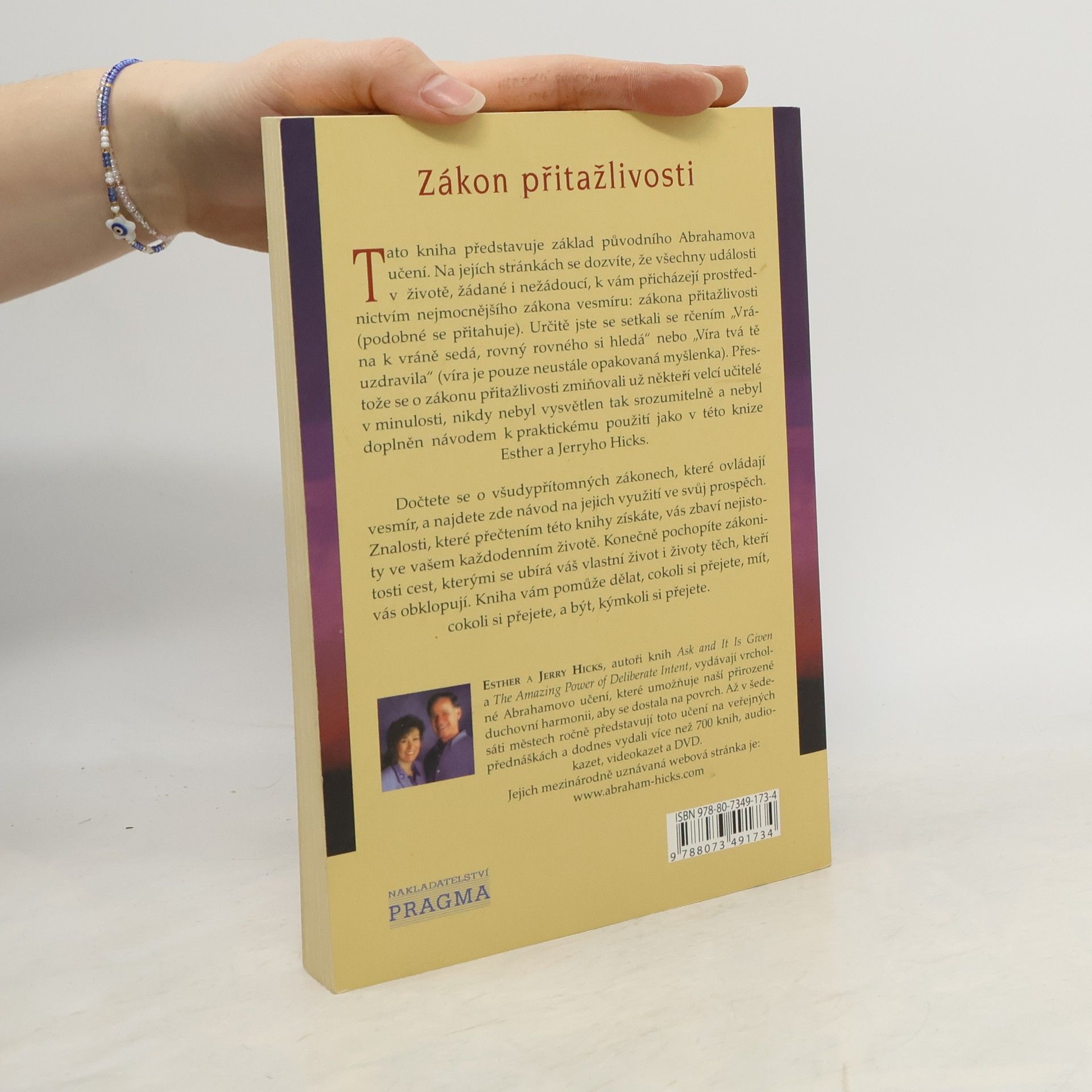 Tato kniha představuje základ původního Abrahamova učení. Na jejích stránkách se dozvíte, že všechny události v životě, žádané i nežádoucí, k vám přicházejí prostřednictvím nejmocnějšího zákona vesmíru: zákona přitažlivosti (podobné se přitahuje). Určitě jste se setkali se rčením „Vrána k vráně sedá, rovný rovného si hledá“ nebo „Víra tvá tě uzdravila“ (víra je pouze neustále opakovaná myšlenka). Přestože se o zákonu přitažlivosti zmiňovali už někteří velcí učitelé v minulosti, nikdy nebyl vysvětlen tak srozumitelně a nebyl doplněn návodem k praktickému použití jako v poslední knize autorů Esther a Jerryho Hicksových. Dočtete se o všudypřítomných zákonech, které ovládají vesmír a najdete zde návod k jejich využití ve svůj prospěch. Znalosti, které přečtením této knihy získáte, vás zbaví nejistoty ve vašem každodenním životě. Konečně pochopíte zákonitosti cest, kterými se ubírá váš vlastní život i životy těch, kteří vás obklopují. Kniha vám pomůže dělat, cokoli si přejete, mít, cokoli si přejete, a být, kýmkoli si přejete.
