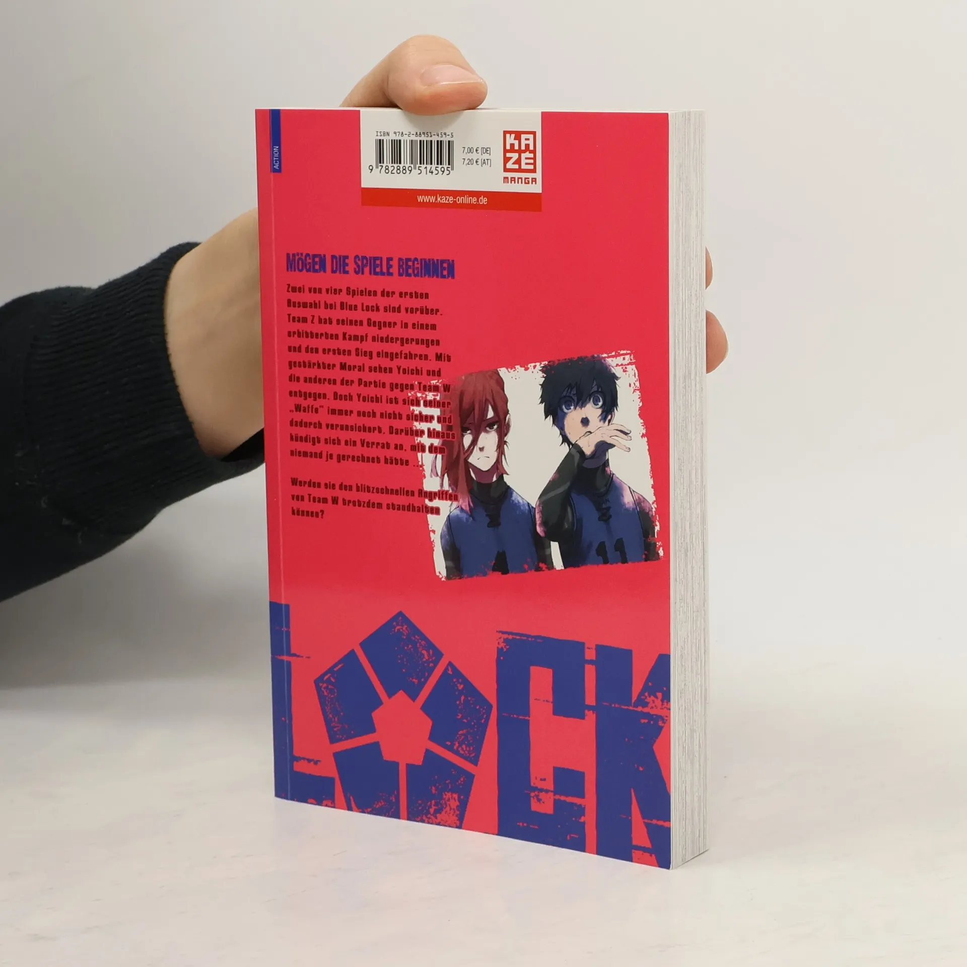 Zwei von vier Spielen der ersten Auswahl bei Blue Lock sind vorüber. Team Z hat seinen Gegner in einem erbitterten Kampf niedergerungen und den ersten Sieg eingefahren. Mit gestärkter Moral sehen Yoichi und die anderen der Partie gegen Team W entgegen. Doch Yoichi ist sich seiner „Waffe" immer noch nicht sicher und dadurch verunsichert. Darüber hinaus kündigt sich ein Verrat an, mit dem niemand je gerechnet hätte … Werden sie den blitzschnellen Angriffen von Team W trotzdem standhalten können?