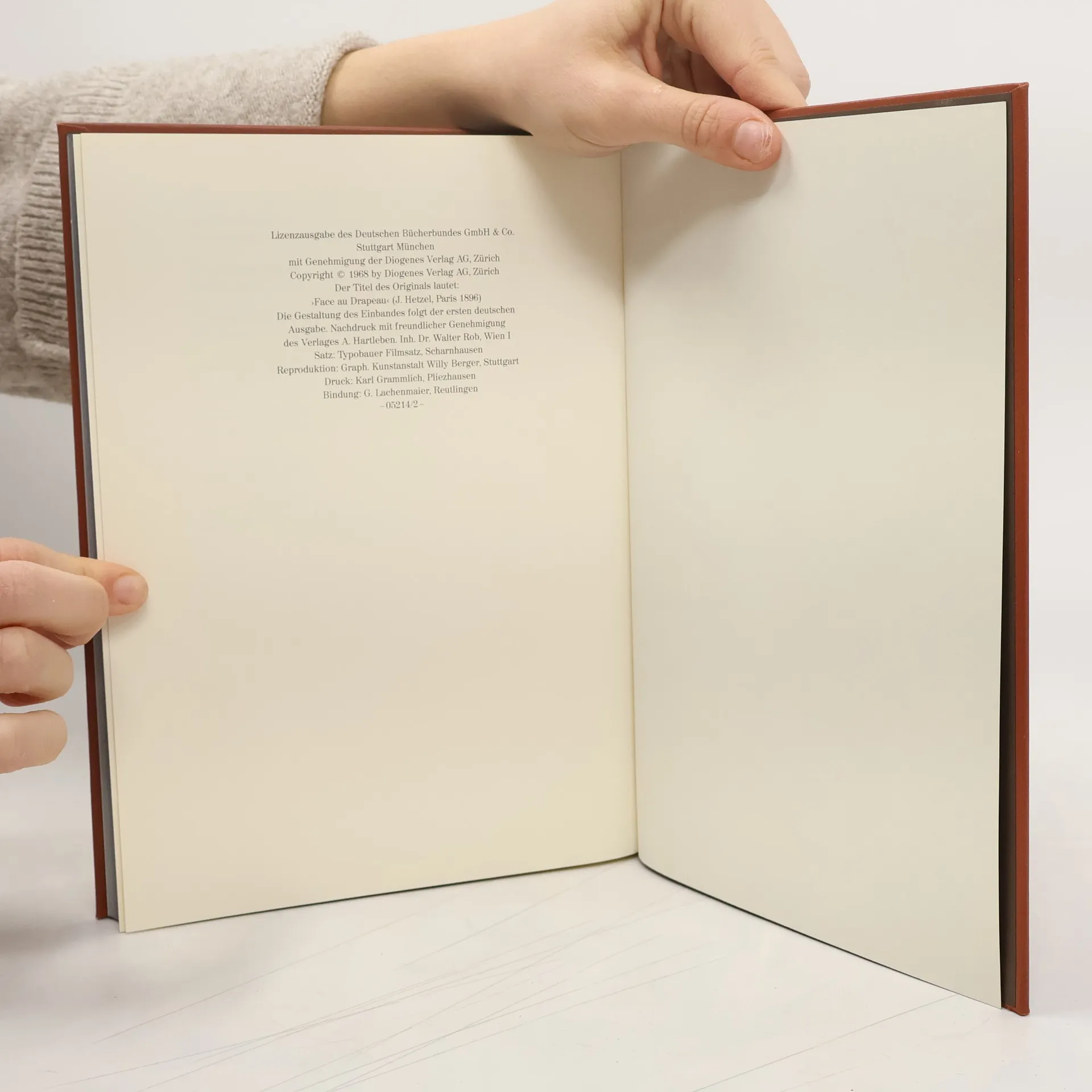 Jules Verne: Die Erfindung des Verderbens FACE AU DRAPEAU (entstanden 1894-1895). Frz. Vorabdruck: Magasin d'Education et de Récréation 1.1.-15.6.1896. Frz. Buch-Erstausgabe: J. Hetzel, Paris 1896. Dt. Buch-Erstausgabe: A. Hartleben, Wien Pest Leipzig o. J., ausgeliefert November 1896. Auch erschienen unter den Titeln »Vor der Flagge des Vaterlands«, »Hoch die Flagge des Vaterlands!« und »Der fliegende Tod«. Vollständige Neuausgabe. Herausgegeben von Karl-Maria Guth. Berlin 2015. Textgrundlage ist die Ausgabe: Jules Verne: Vor der Flagge des Vaterlands. Bekannte und unbekannte Welten. Abenteuerliche Reisen von Julius Verne, Band LXIX, Wien, Pest, Leipzig: A. Hartleben, 1897. Die Paginierung obiger Ausgabe wird in dieser Neuausgabe als Marginalie zeilengenau mitgeführt. Umschlaggestaltung von Thomas Schultz-Overhage unter Verwendung des Bildes: Buchillustration von Léon Benett, 1896. Gesetzt aus Minion Pro, 11 pt.