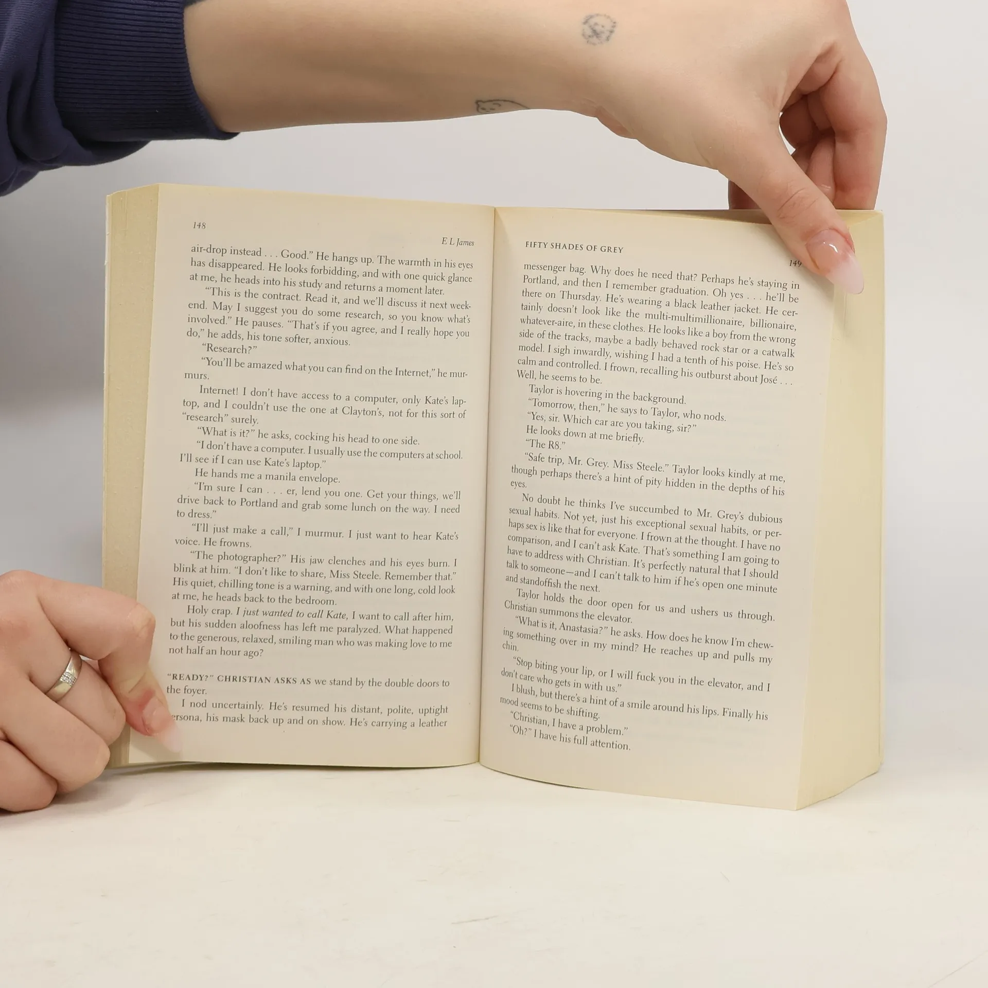 Fifty Shades of Grey is a 2011 erotic romance novel by British author E. L. James. It became the first instalment in the Fifty Shades novel series that follows the deepening relationship between a college graduate, Anastasia Steele, and a young business magnate, Christian Grey. It contains explicitly erotic scenes featuring elements of sexual practices involving BDSM.