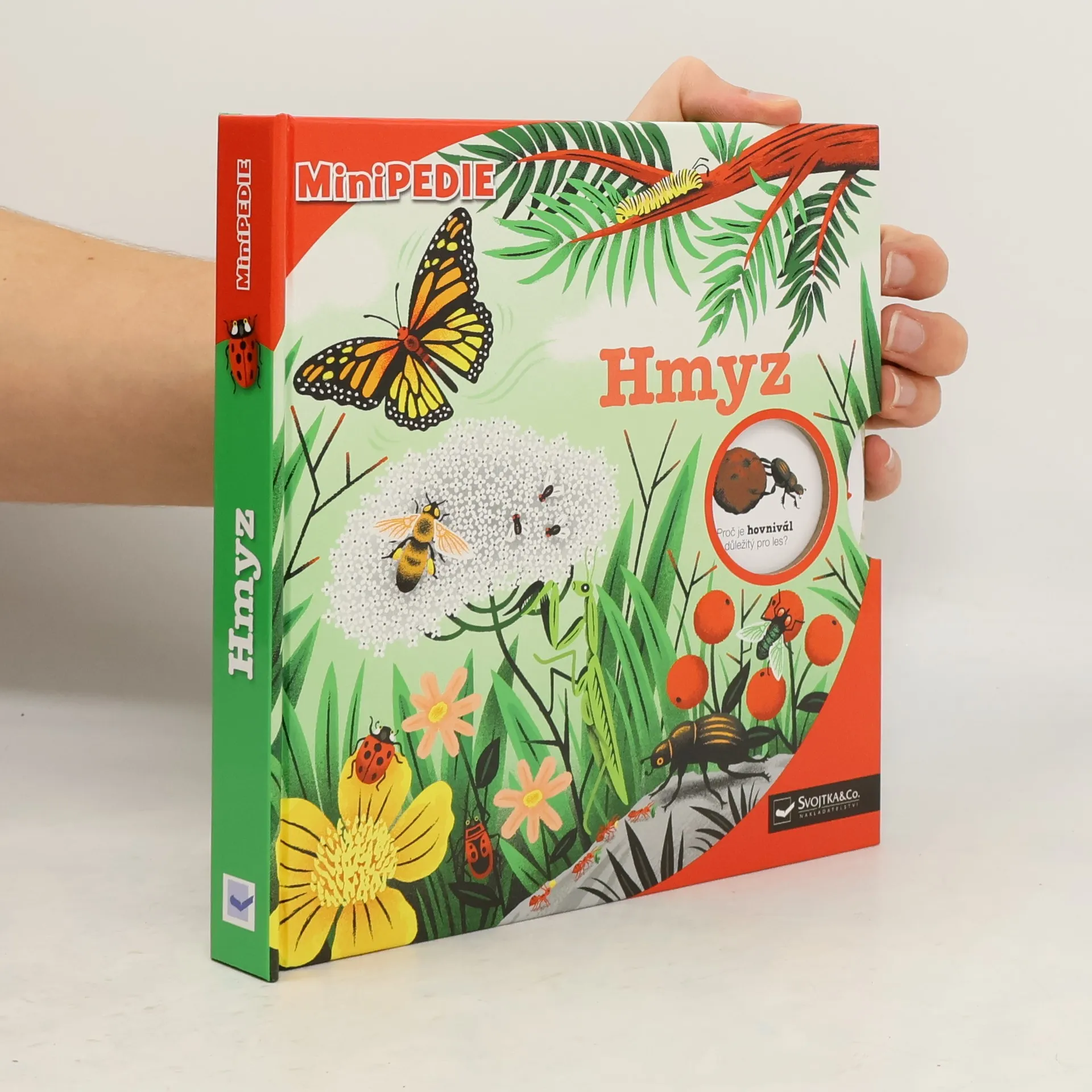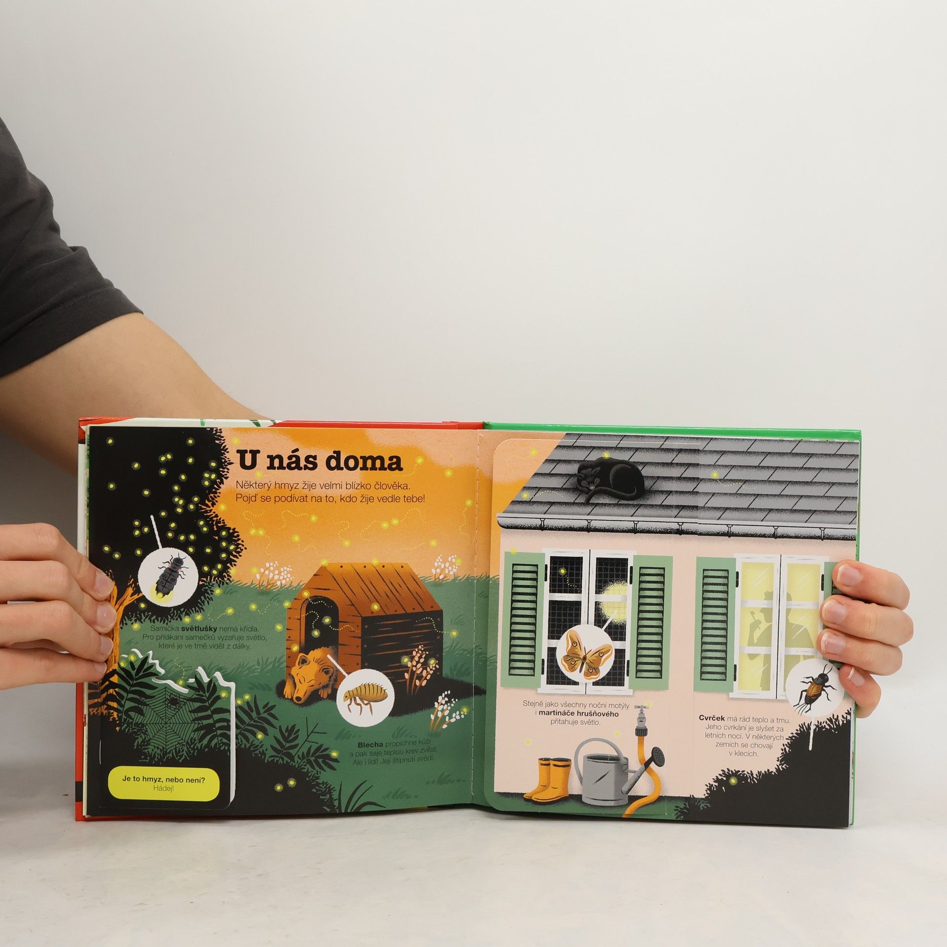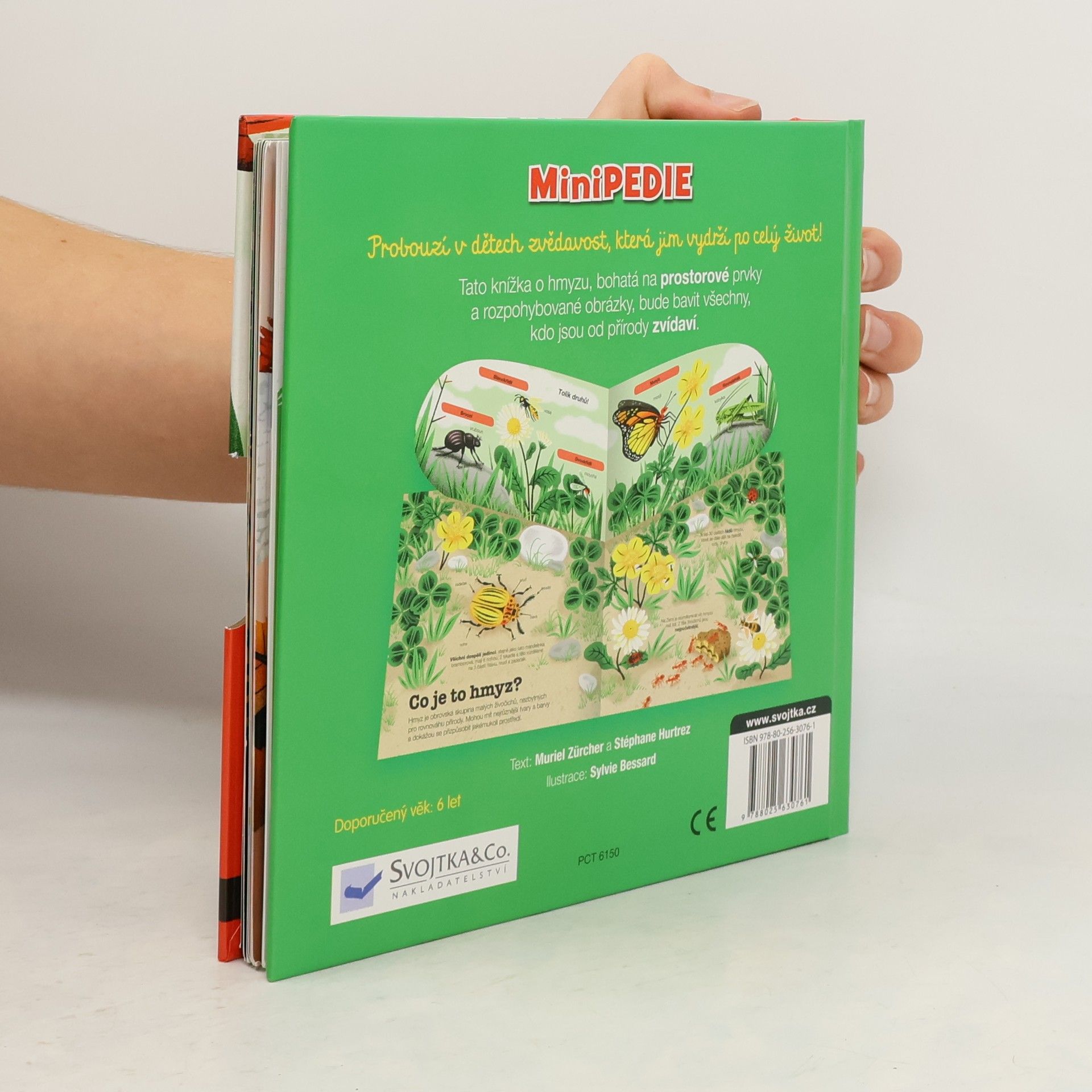 Knížka o hmyzu, bohatá na prostorové prvky a rozpohybované obrázky, bude bavit všechny, kdo jsou od přírody zvídaví. Čekají v ní na malé čtenáře spousty a spousty hmyzáků. A všichni se těší, až objeví jejich nevšední životy. Zjistí, které druhy jsou si příbuzné. Podívají se nanávštěvu ke včelám i k mravencům do mraveniště. A který hmyz se umí báječně maskovat? Posunujte pohyblivé prvky v knížce, schválně jestli je všechny objevíte.