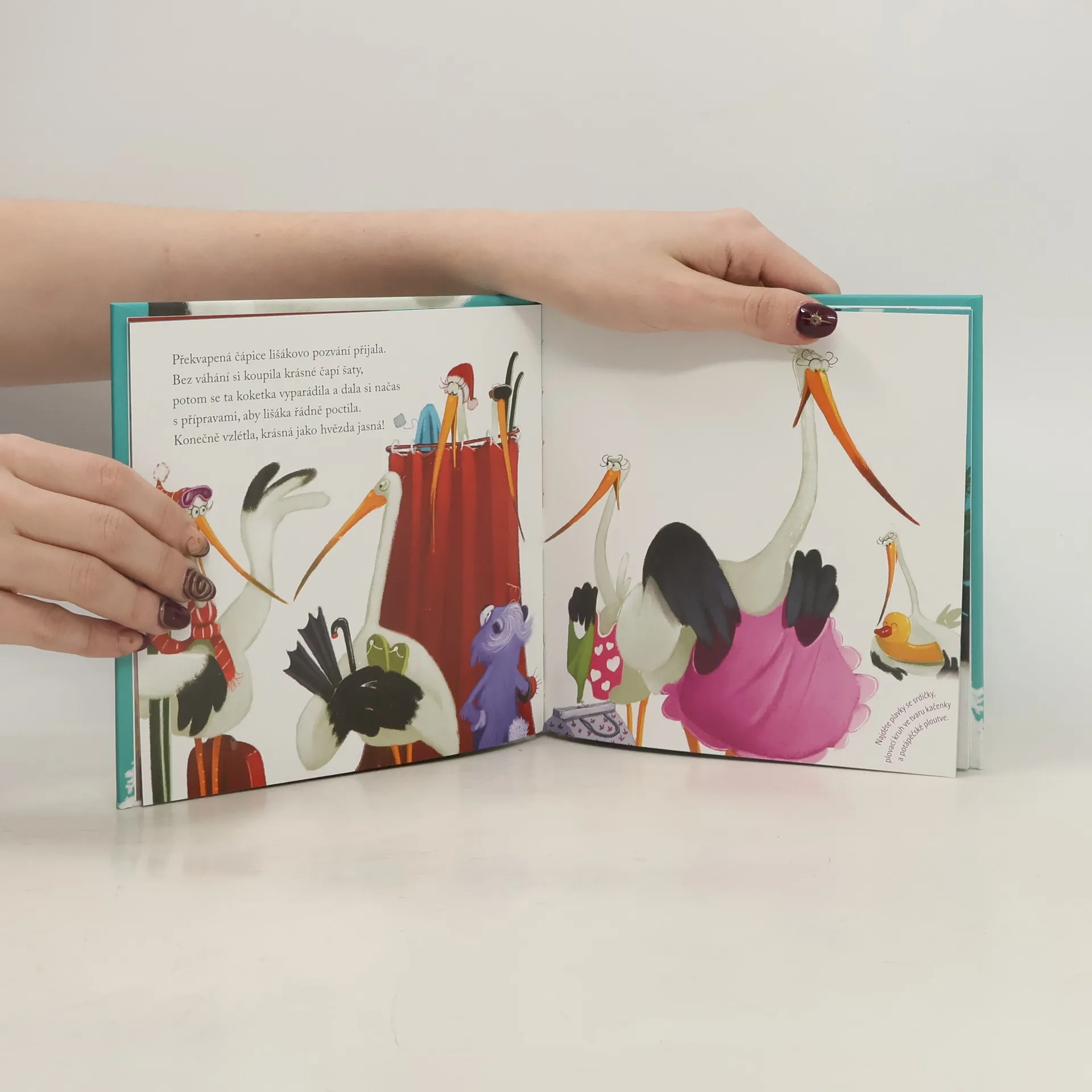 Klasická bajka převyprávěná pro předškolní děti v doprovodu celostránkových ilustrací. V jedné malé chaloupce na vrcholu vysoké hory žije lakomý lišák. Jednoho večera pozve na večeři čápici, čímž překvapí celé údolí. Tím však překvapení nekončí: lišák se možná rozhodl hrát si na šprýmaře, ale čápice ještě neřekla poslední slovo. Nakladatelská anotace. Kráceno.