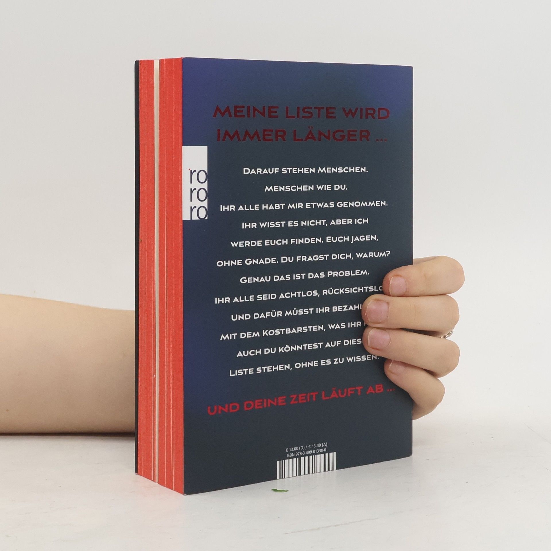 Meisterhafte Hochspannung: der neue Thriller von Nr.-1-Bestsellerautor Andreas Winkelmann. Die Zeit – sie verrinnt uns zwischen den Fingern. Sie wird uns gestohlen. Wir verschwenden sie. Was, wenn jemand bereit ist, für dieses kostbare Gut zu töten? Meine Liste wird immer länger … Darauf stehen Menschen. Menschen wie du. Ihr alle habt mir etwas genommen. Ihr wisst es nicht, aber ich werde euch finden. Euch jagen, ohne Gnade. Du fragst dich, warum? Genau das ist das Problem. Ihr alle seid achtlos, rücksichtslos. Und dafür müsst ihr bezahlen. Mit dem Kostbarsten, was ihr habt. Auch du könntest auf dieser Liste stehen, ohne es zu wissen. Und deine Zeit läuft ab …