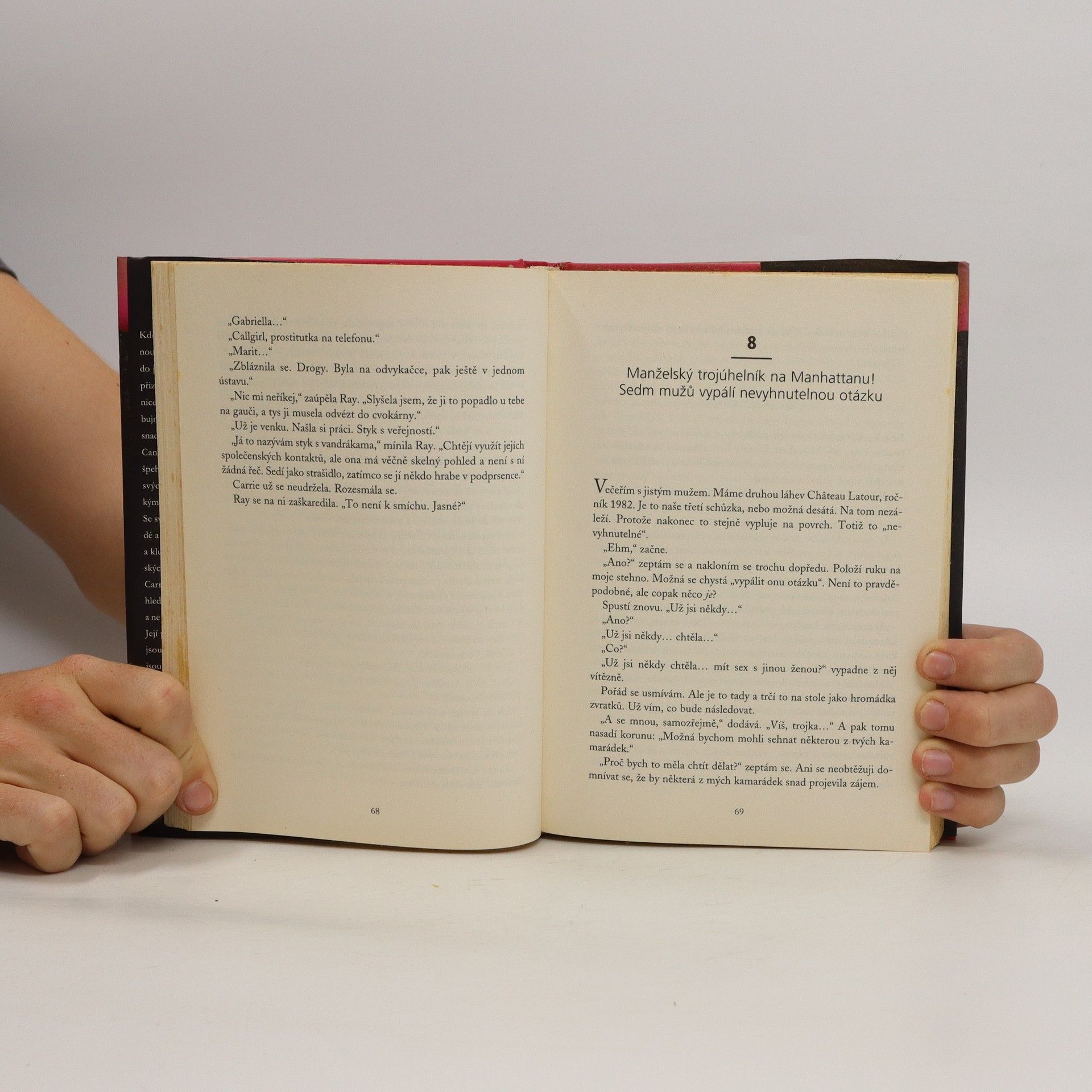 Kdo z nás by alespoň jednou nechtěl nahlédnout do světa bohatých a slavných, podívat se do jejich přepychových bungalovů a – jen si to přiznejme! – jedním okem nakouknout do ložnice. Copak se tam asi tak odehrává? Divoké, bujné milování jako z erotického časopisu, anebo snad stejná manželská nuda jako kdekoli jinde? Candace Bushnellová pro nás tu pomyslnou špehýrku otevírá a pohled na milostná kolbiště svých bližních ještě svým zábavným a ironickým způsobem komentuje. Se svým příznačným humorem nám představí „mladé a krásné“ lidi, kteří táhnou z večírků do barů a klubů, v létě jezdí do přepychových přímořských letovisek a v zimě na lyže. Carrie, prototyp ztrápené mladé spisovatelky, hledá lásku výhradně na nesprávných místech, a ne vždy vychází všechno podle jejích představ. Její přítelkyně Samantha, Miranda a Charlotte jsou také nadšenými lovkyněmi mužů a vždy jsou ochotny posloužit velice konkrétními radami. Fotogenické krasavice se slepičími mozečky balí kdekoho, neurotické maminy se vychloubají svými otřesnými dětmi a příkladnými manžílky, a všechny dohromady zajímá jen jedno jediné – sex.