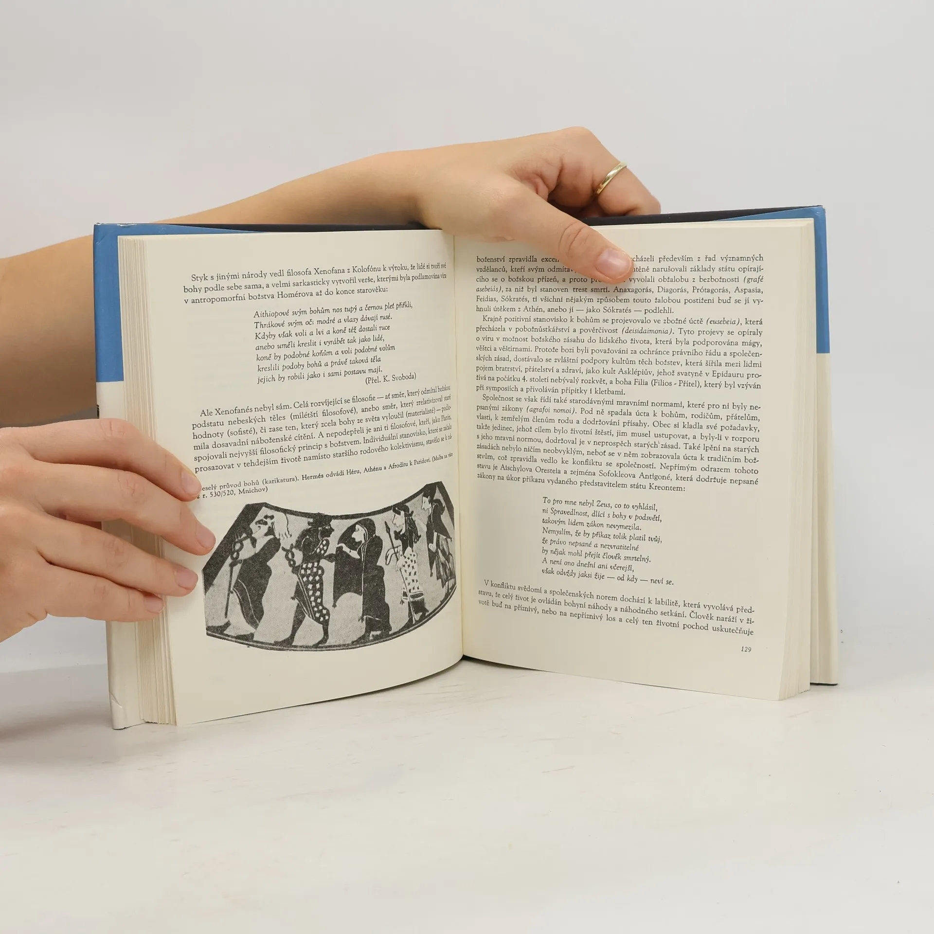 Podtitul: Pohledy do řeckého dávnověku Pohled do každodenního života obyvatel antického Řecka umožňuje lepší pochopení složitého a dlouhého vývoje, jímž řecká společnost prošla. Autor vypráví o řecké krajině a jejím místě v životě člověka, popisuje tehdejší města, všímási společenské organizace jednotlivých městských států, zaměstnání obyvatel, politického a rodinného života. Značnou pozornost věnuje náboženskému životu, postavení ženy, hrám a zábavám, divadlu, vědě aj. Zajímavé vyprávění uzavírají přehledné chronologické tabulky.