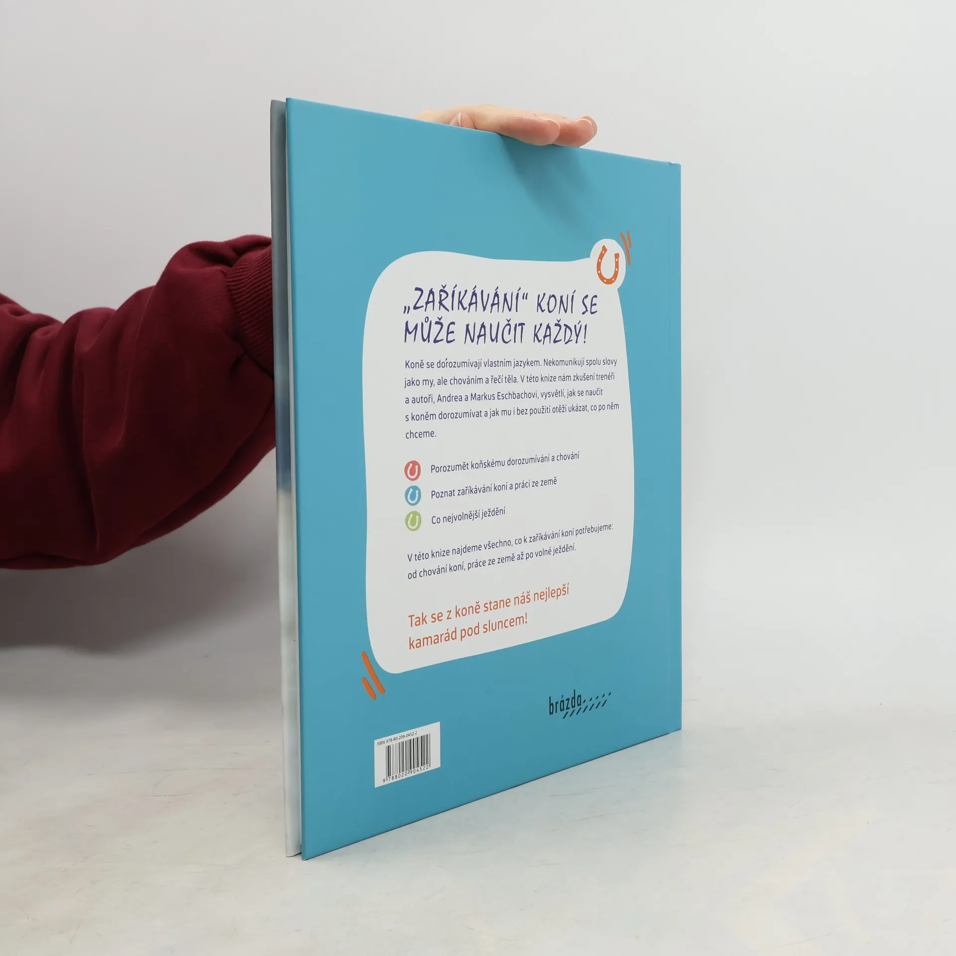 Koně se dorozumívají vlastním jazykem. Nekomunikují spolu slovy jako my, ale chováním a řečí těla. V této knize nám zkušení trenéři a autoři, Andrea a Markus Esbachovi, vysvětlí, jak se naučit se s koněm dorozumívat a jak mu bez použití otěží ukázat, co po něm chceme. Tak se z koně stane náš nejlepší kamarád pod sluncem!