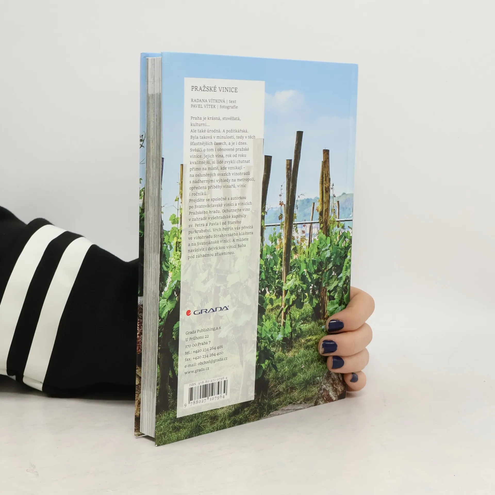 Praha je krásná, stověžatá, kulturní… Ale také úrodná. A požitkářská. Byla taková v minulosti, tedy v těch šťastnějších časech, a je i dnes. Svědčí o tom i obnovené pražské vinice. Jejich vína, rok od roku kvalitnější, si lidé zvykli chutnat přímo na místě, kde vznikají. Na osluněných svazích vinohradů, s nádhernými výhledy na metropoli, opředená příběhy vinařů, vinic i ročníků. Projděte se společně s autorkou po Svatováclavské vinici a vinicích Pražského hradu. Ochutnejte víno na Vyšehradě v zahradě kapituly sv. Petra a Pavla i od Starého purkrabství. Vrch Petřín vás přivítá ve vinohradu Strahovského kláštera a na vinici Svatojánské. A můžete navštívit i dejvickou vinici Baba pod záhadnou zříceninou.