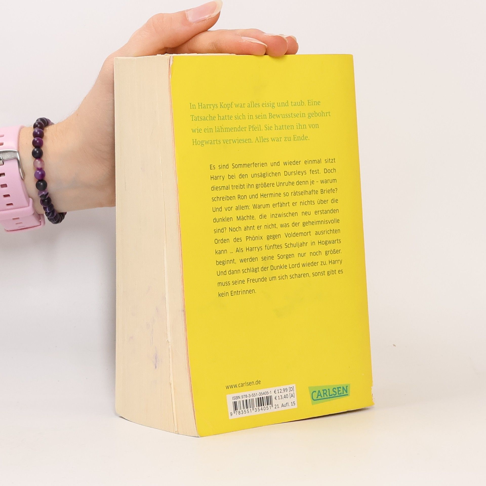 Es sind Sommerferien und wieder einmal sitzt Harry bei den unsäglichen Dursleys fest. Doch diesmal treibt ihn größere Unruhe denn je – warum erfährt er nichts über die dunklen Mächte, die inzwischen neu erstanden sind? Noch ahnt er nicht, was der geheimnisvolle Orden des Phönix gegen Voldemort ausrichten kann ... Doch dann schlägt der Dunkle Lord wieder zu. Harry muss seine Freunde um sich scharen, sonst gibt es kein Entrinnen. Dies ist der fünfte Band der international erfolgreichen Harry-Potter-Serie, die Generationen geprägt hat. Alle Bände der Serie: Harry Potter und der Stein der WeisenHarry Potter und die Kammer des SchreckensHarry Potter und der Gefangene von AskabanHarry Potter und der FeuerkelchHarry Potter und der Orden des PhönixHarry Potter und der HalbblutprinzHarry Potter und die Heiligtümer des Todes Die Harry-Potter-Serie ist abgeschlossen.