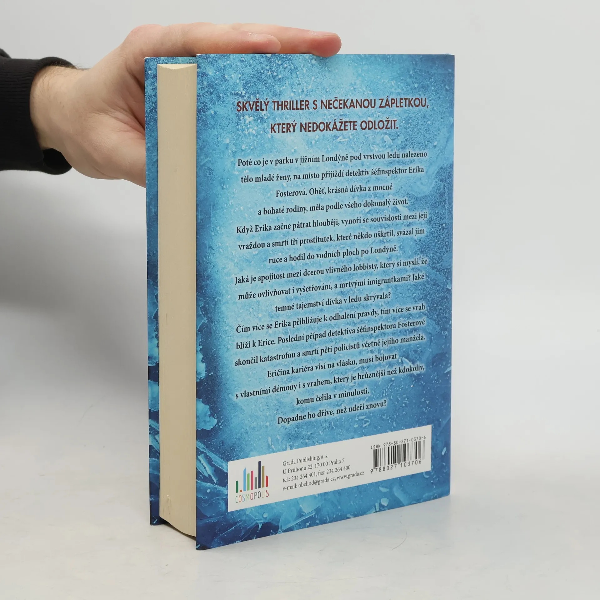 Poté co je v parku v jižním Londýně pod vrstvou ledu nalezeno tělo mladé ženy, na místo přijíždí detektiv šéfinspektor Erika Fosterová. Oběť, krásná dívka z mocné a bohaté rodiny, měla podle všeho dokonalý život. Když Erika začne pátrat hlouběji, vynoří se souvislosti mezi její vraždou a smrtí tří prostitutek, které někdo uškrtil, svázal jim ruce a hodil do vodních ploch po Londýně. Jaká je spojitost mezi dcerou vlivného lobbisty, který si myslí, že může ovlivňovat i vyšetřování, a mrtvými imigrantkami? Jaké temné tajemství dívka v ledu skrývala? Čím více se Erika přibližuje k odhalení pravdy, tím více se vrah blíží k Erice. Poslední případ detektiva šéfinspektora Fosterové skončil katastrofou a smrtí pěti policistů včetně jejího manžela. Eričina kariéra visí na vlásku, musí bojovat s vlastními démony i s vrahem, který je hrůznější než kdokoliv, komu čelila v minulosti. Dopadne ho dříve, než udeří znovu?